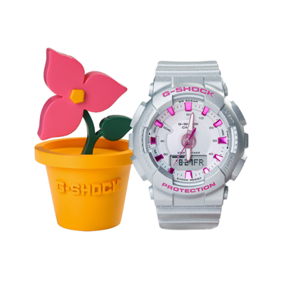 得物 App 这次还为喜欢潮流收藏玩家上线了很多独家限定的潮流新品。得物 App 独家限量首发 G-Shock × FiSN 跨界联名时间胶囊概念系列特殊礼盒版,礼盒的外形灵感是来自 FiSN 经典三角梅元素,该款礼盒还采用了天然环保树脂,用植物染料赋色的环保再生材质纸盒,旨在打造环保与时间的潮流新概念。潮流双显防震防磁酷感银色立体表盘设计手表 GMA-S130NP-8APRF 即刻拥有。