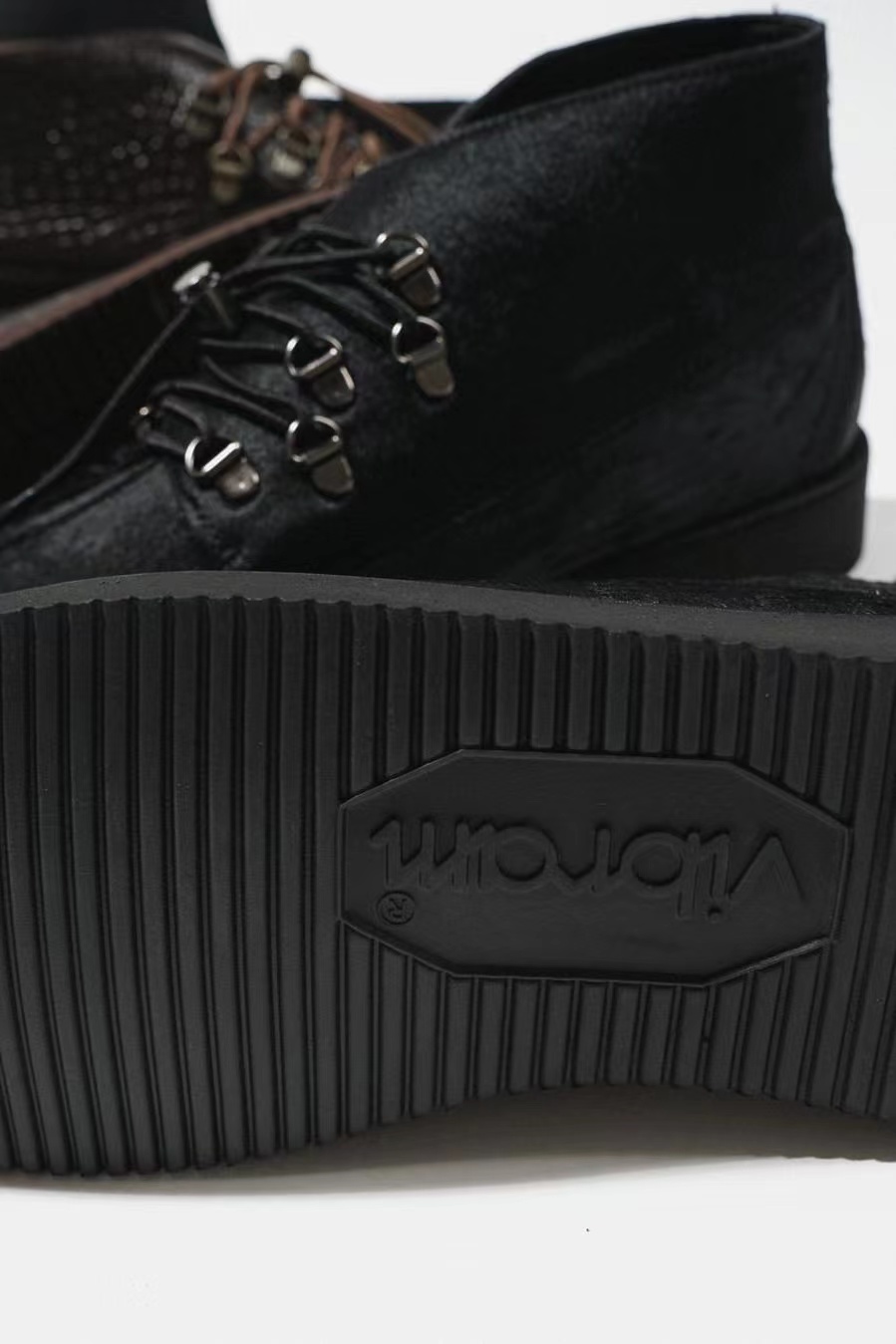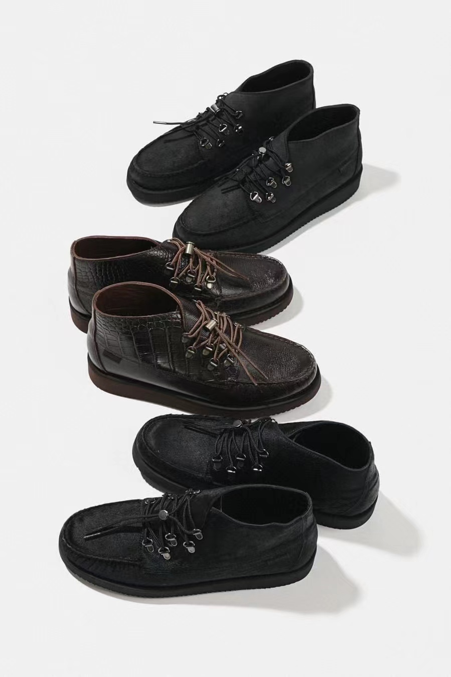 设计师铃木大器通过从 RED WING 6 Inch boot 的鞋带系统中获取灵感,为 Overlap Mid 融入了更多个人喜好,所以可以看到这组设计拥有与常规款式不同的金属鞋带扣。鞋带采用了相对更具有户外感的尼龙材质和快速束紧扣,再加持 Vibram 鞋底,呈现出了完全不同的味道,同时搭配起来也不会显得太过于死板和成熟。除此之外,此次合作还推出了翻毛皮、马鬃毛以及蟒蛇拼鳄鱼皮三种鞋面材质版本,上脚后也会呈现出不同效果。