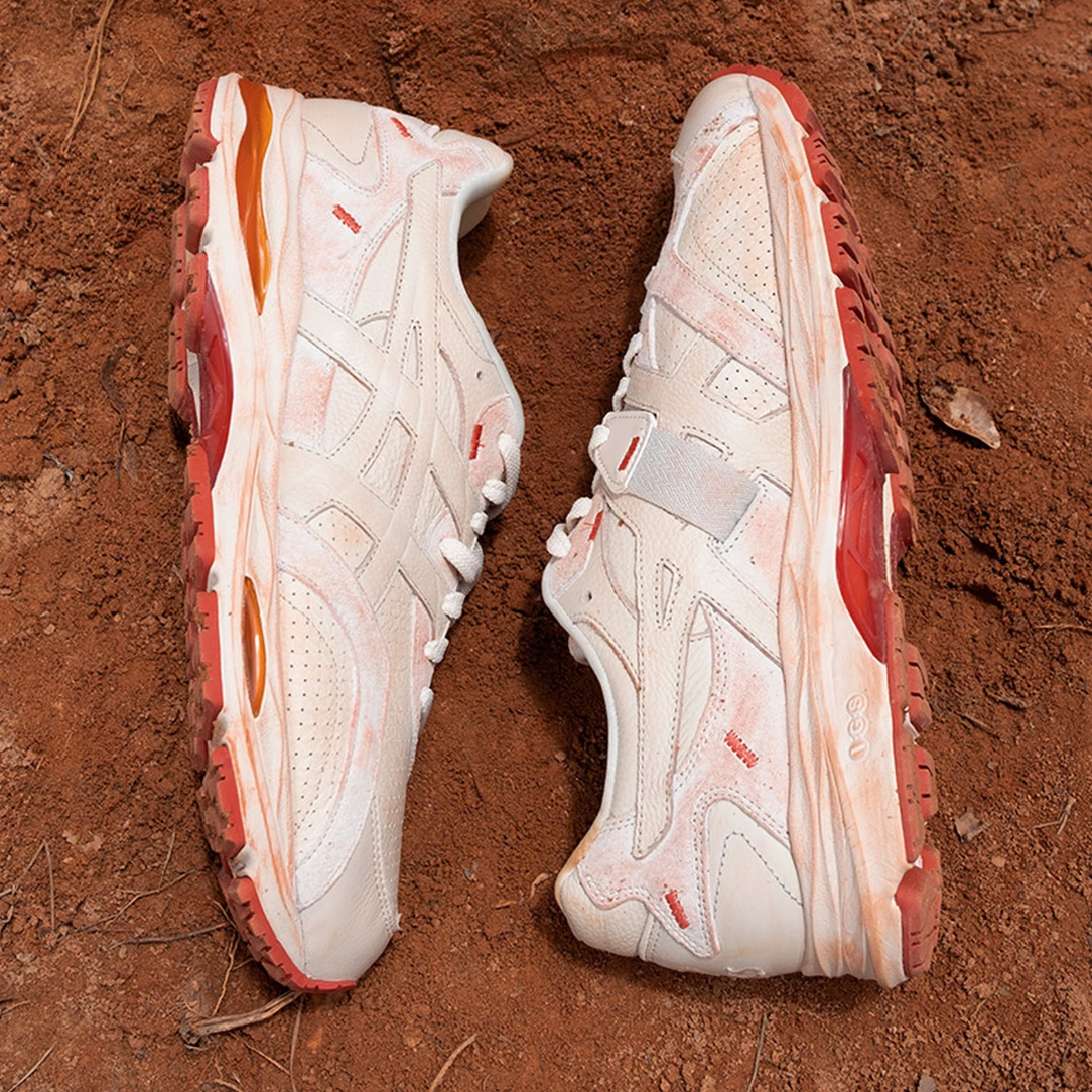 双方选择了最早诞生于 1995 年的 GEL-MC PLUS 作为蓝本,其本身就是近一段时间 ASICS 颇为瞩目的鞋型之一。而在这次合作中,Tremaine Emory 想要把他童年的一部分记忆带入到设计中。两款命名为「Brick 砖块」和「Cream 奶油」的配色都在鞋面和中底部分拥有做旧处理,这来自于 Emory 经常在未铺设的红土道路上打球的童年经历,特殊的效果营造出了经过穿着和磨损过后形成的视感。
