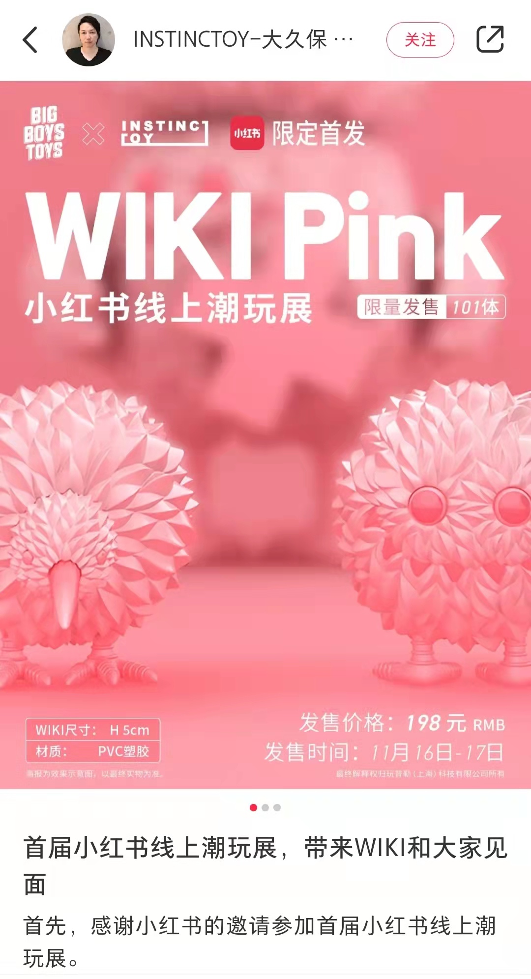 现在,网络社交形态进化之下,大家都能通过网络了解潮流艺术、潮流玩具文化。在国内的社交分享平台小红书上,大家熟悉的头部潮流艺术家如 Daniel Arsham 、 James Jean 与 INSTINCTOY 主理人兼设计师大久保博人也早已进驻。而吸引不少国内外潮流艺术家与新锐艺术家都进驻的小红书, 11 月 17 日开始带给大家一个真正的线上潮玩展——小红书潮玩展 RTS 。