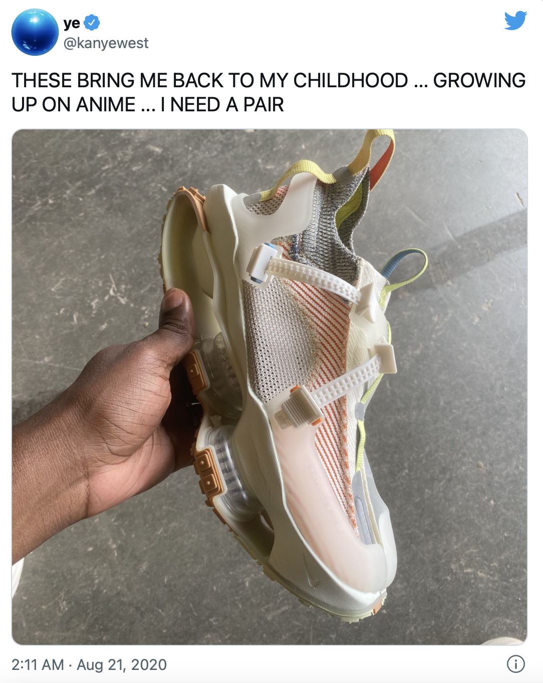 无独有偶,与其说这次这次照片曝光是意外,Kanye 而后直接在 Twitter 对 Nike ISPA Road Warrior 给予的高度评价,看起来就更加「肆无忌惮」了。Kanye 表示这双鞋非常棒,世界需要这样的设计,自己一定得来一双,无疑让合作伙伴陷入尴尬的境地…