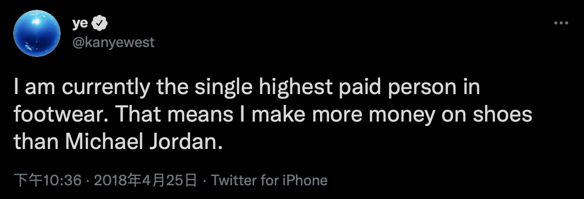 显而易见的是,这一系列言论中都存有赌气和威胁的成分,实际上他一直想要在合作中寻求更高的地位和话语权。去年 9 月,就曾通过个人 Twitter 发表了几段令人惊讶的言论,对正在合作的 GAP 与 adidas 两家公司发出警告。此前,他曾指责两家公司董事会席位缺乏多样性,并想要进入董事会,而这条推文则直截了当的表示:在他获得两家公司的董事会席位之前,他将停止发布与 GAP 的合作,并且只会穿 Jordan 的衣服。
