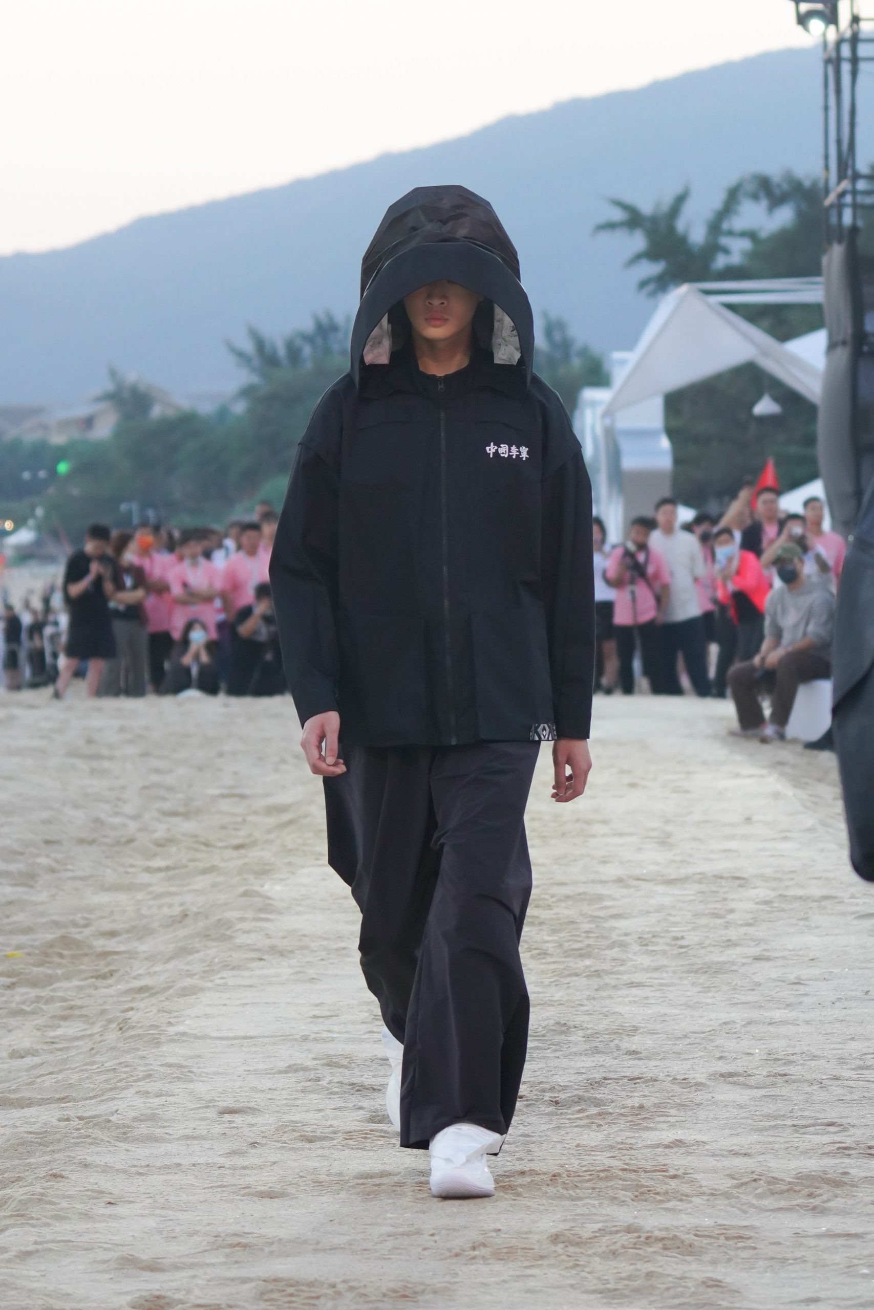这些具有苗族元素的服装也和当下流行的山系风格产生了联系,设计师团队告诉我们「我们发现苗族山民的药草采集,以及其他的农作生活,全都来源于山林生活状态。大多数苗族人都依在水塘生活的,所以他们的生活离不开山和水,所以我们就从苗族的山水里面,寻找一些和运动相关的东西,比如说像激流、皮划艇,以及攀岩运动,然后和现代感的元素结合在一起,形成我们这次带来的部分具有户外风格的产品。」