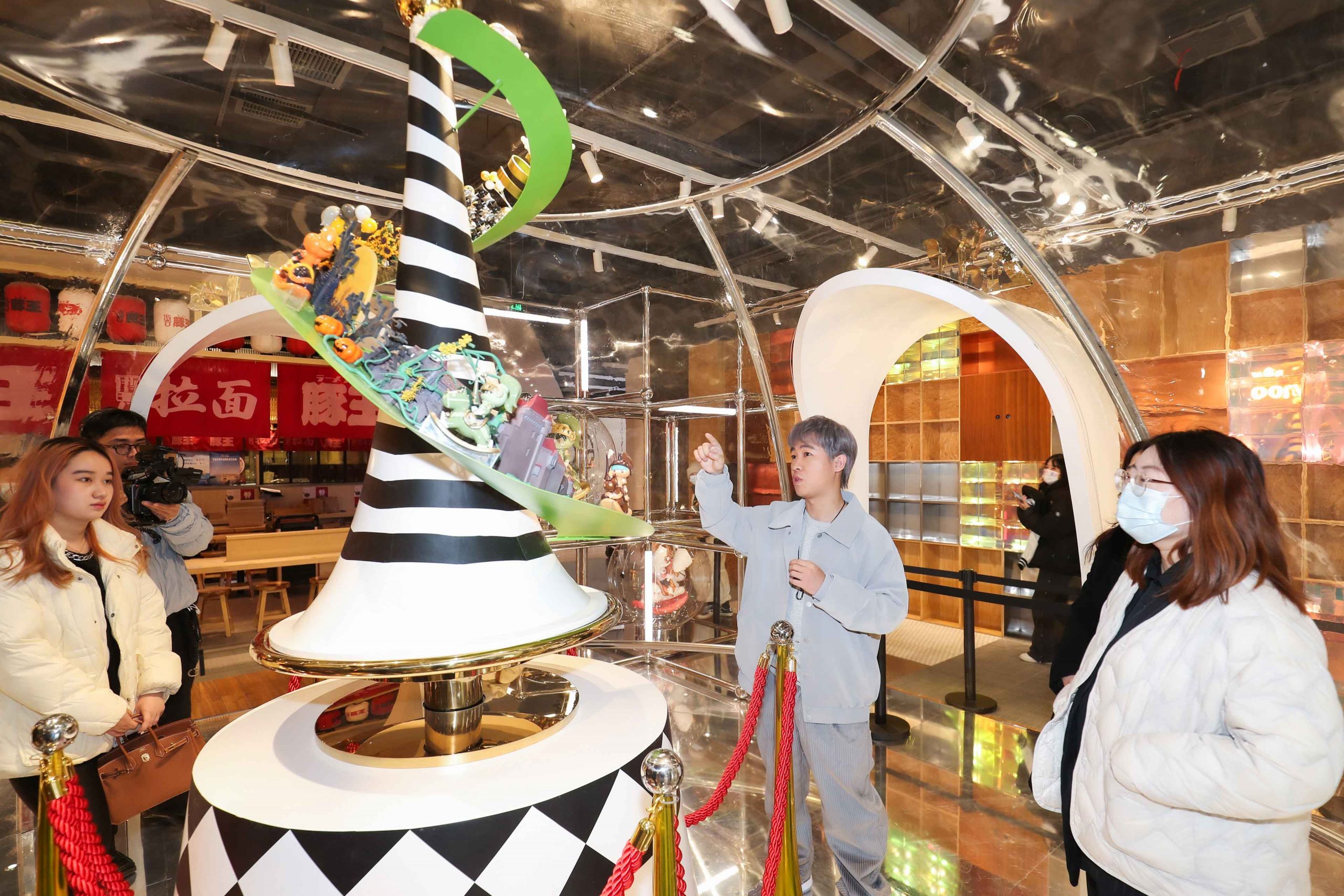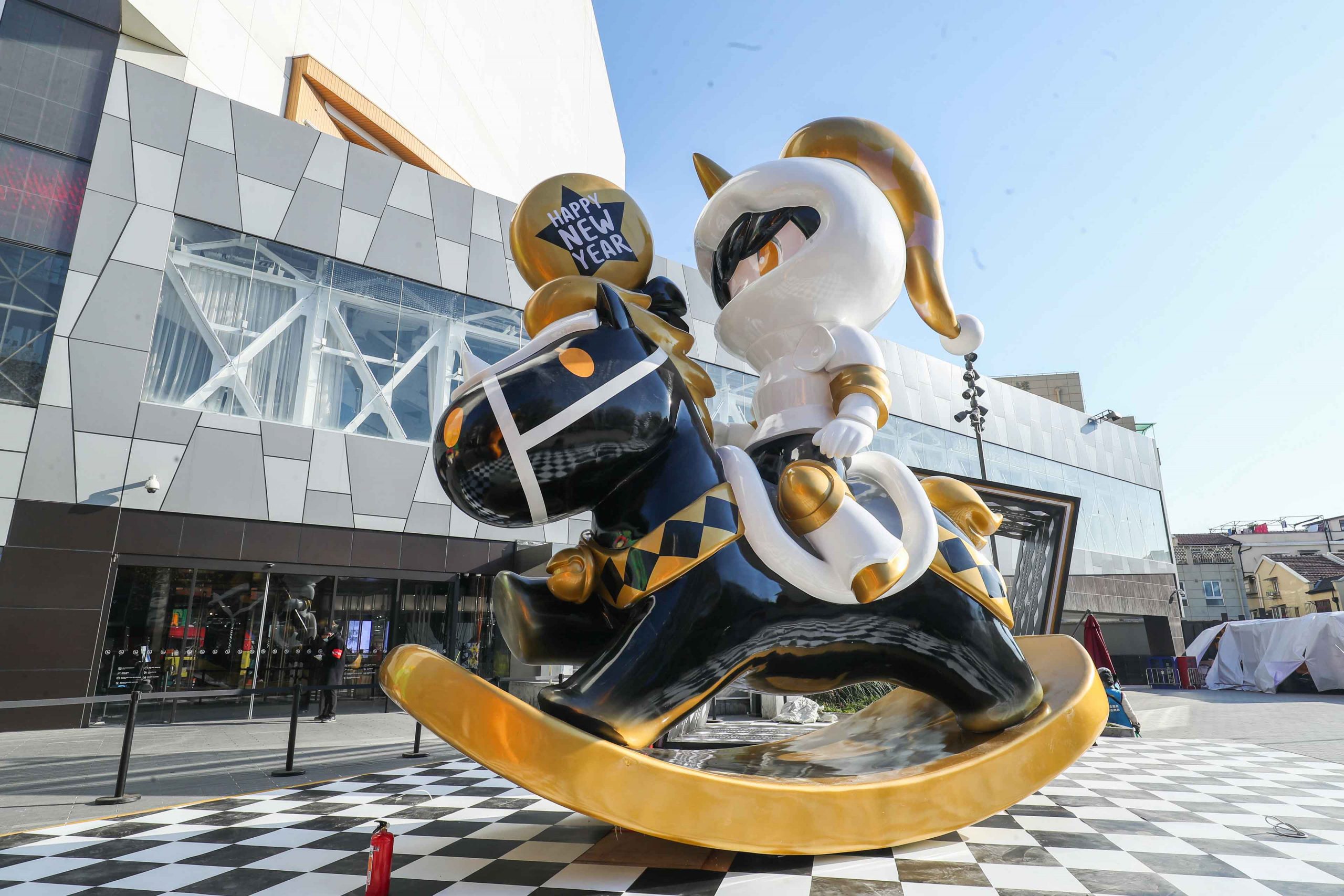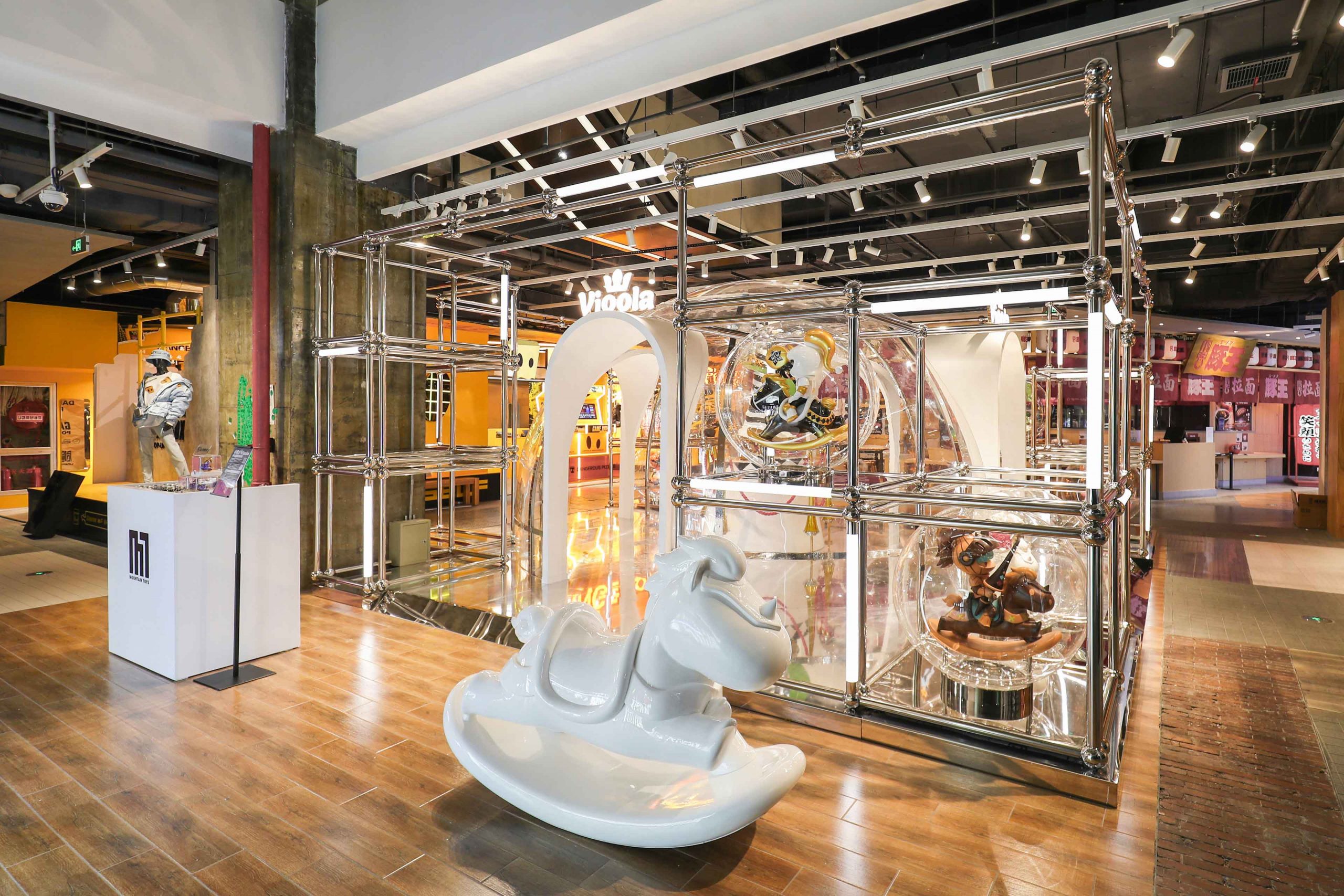 广场中的棋盘格舞台被光幕环绕,中央屹立的 6 米高巨型机械动态小骑士 Vioola,传递出迎接新年、点亮未来的美好期许。走进 1 楼中庭,由多款历代小骑士 Vioola 组合的艺术装置,和数个赛博朋克风玻璃球构筑独特的艺术形态,为大众呈现独具特色的小骑士 Vioola 宇宙,此外现场趣味的互动形式亦吸引众多关注。