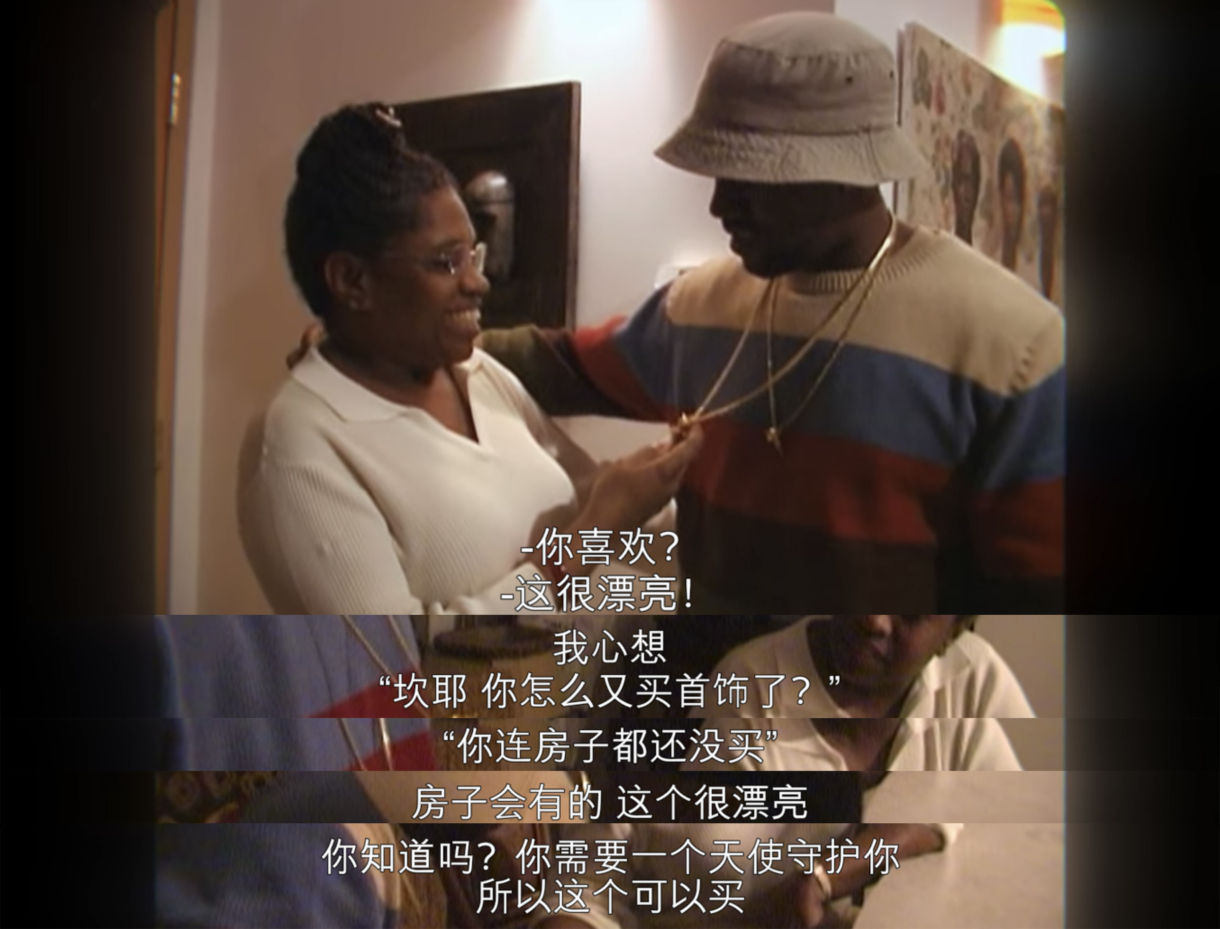 Donda 看到 Kanye 新买的天使项链,便称赞它有多么好看,身边有天使保佑儿子也让他颇感欣慰。虽然嘴上还是会说「你连房子都没买就又买了新首饰」,可看到 Kanye 喜欢她也不再多讲。