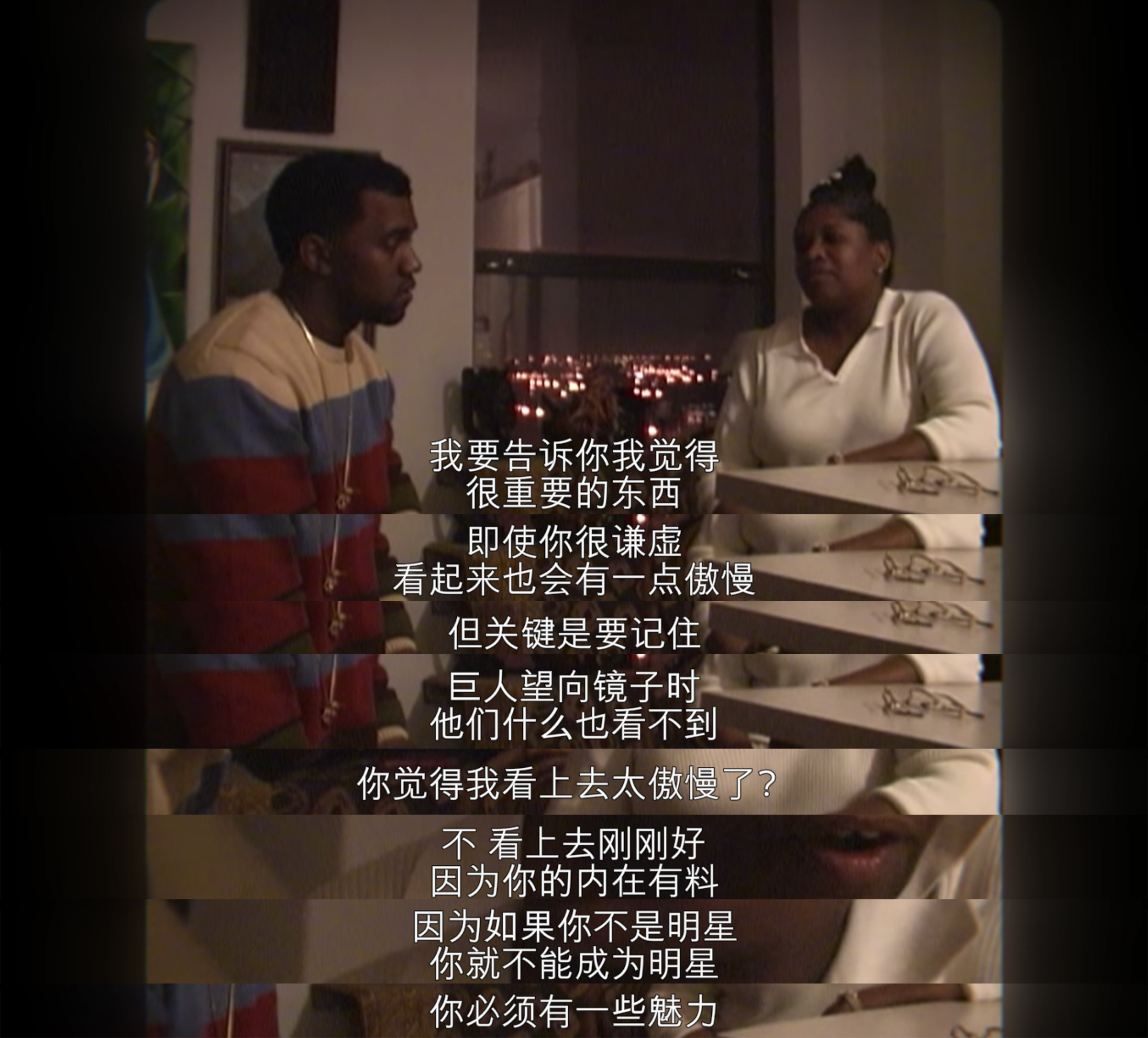 Kanye 似懂非懂般的不甚理解,以为妈妈觉得自己傲慢,但 Donda 立即又给予鼓励:「明星是需要有一些个性魅力才能成为明星。」这段简单却富含深意的对话提醒着 Kanye 要保持谦逊的心态。