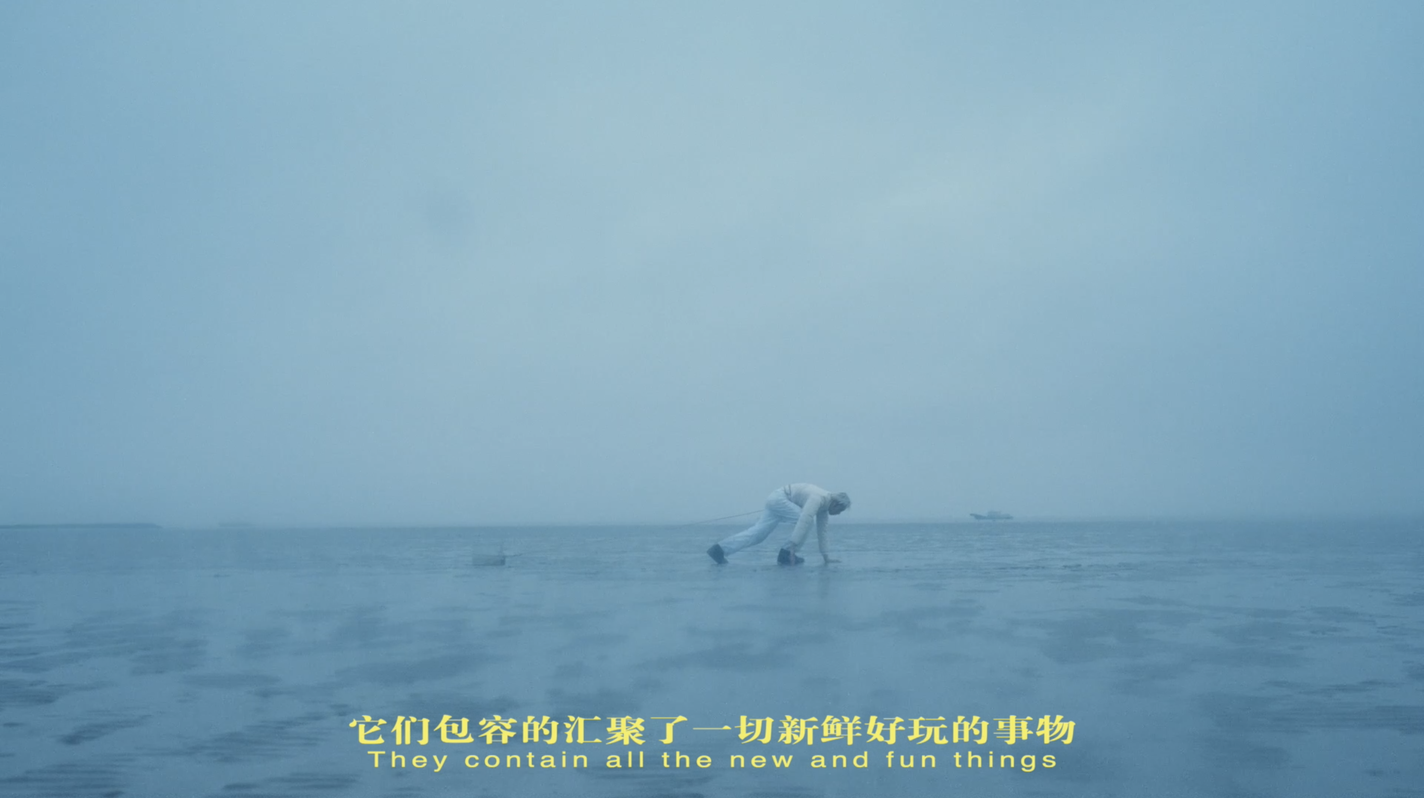 正如木心先生提及的身份的转变,两位创作者在镜头中,从导演变成演绎「后海计划」的演员,再互相交互变成观众,注视着彼此的创作。他们端着咖啡,走上滩涂,讨论着人们「汇集」到城市,像是一场仪式,也是一种成长。在谈话间,他们想探索一片新的海域,沿着道路,步履往前,随着浪声跌入池中,像是进入到新的探索和一个新的「鱼缸」之中。