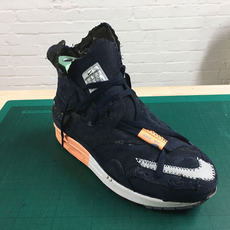 这些项目帮助 Helen Kirkum 在球鞋圈的关注度激增,同时也逐渐建立了属于自己的解构式设计语言:她擅长将回收而来的旧鞋解构,拆出所有能用的零部件,再按需求把它们结合成各种形状,就像玩拼图一样构建球鞋。