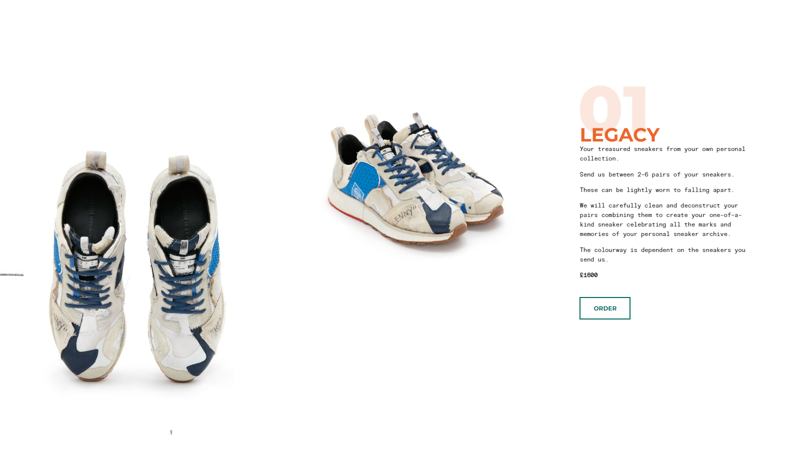 具体来说,LEGACY 模式的定制在你的私人鞋款上完成,你需要挑选 2 至 6 双自己的鞋子寄给他们,在其基础上进行构思与设计后,会对这些鞋款进行清理和解构,在经历全部拆解与重组的过程后,创造一款独属于你自己的设计。