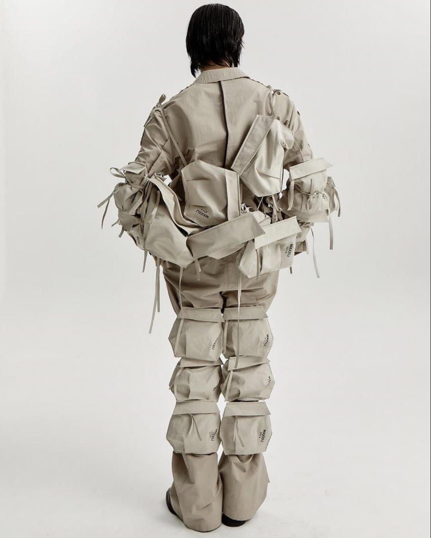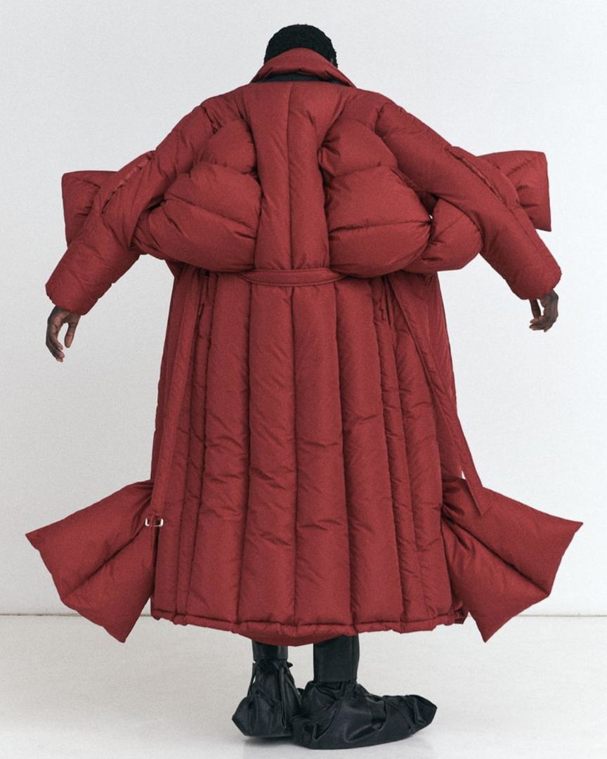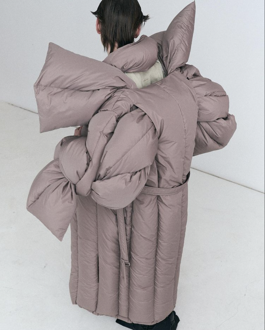 再说到运用夸张绗缝设计的 2022 秋冬系列,MAXXIJ 通过形式各异的扭曲、褶皱和可自行拆解、组合的系带,让不同身材、不同性格的人,穿着时均可展现出全然不同的效果,以此传递「自由的时尚能够再造个人」的创作哲学。