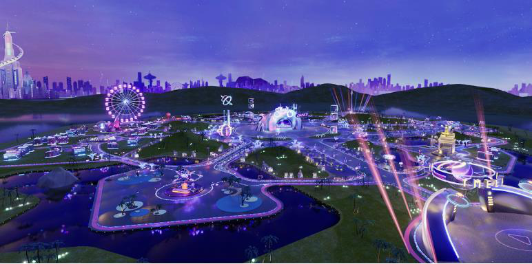登陆岛上,氤氲的霓虹色彩充斥其中,未来科幻感扑面而来,这不正是年轻人心驰神往的赛博朋克世界缩影吗?在这个与世无争的岛屿中,人们在某种程度上是更为真实且自由的,不仅可以随意走动、观看演出,还可以和大家一起跳舞打 call、聊天互动等等。