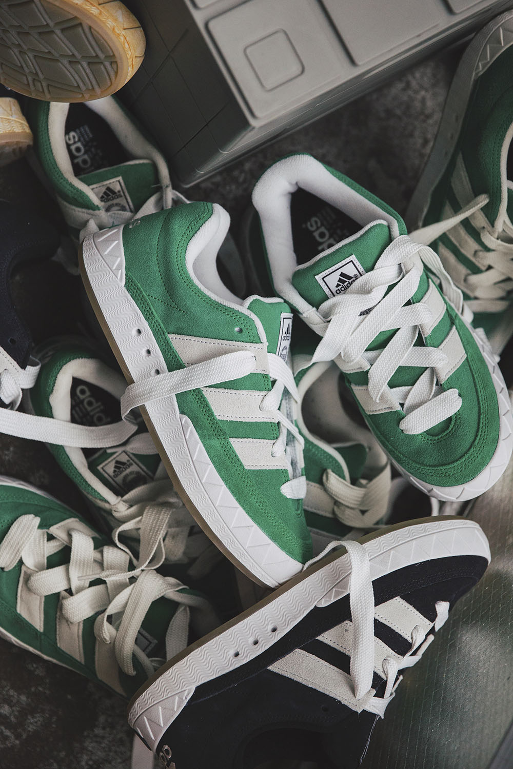 adidas Originals 则将上世纪 90 年代品牌的经典滑板鞋 ADIMATIC 带回,同样是饱满圆润的鞋款,搭配放大尺寸大的三条纹 Logo 和超宽鞋带作为鲜明特征。