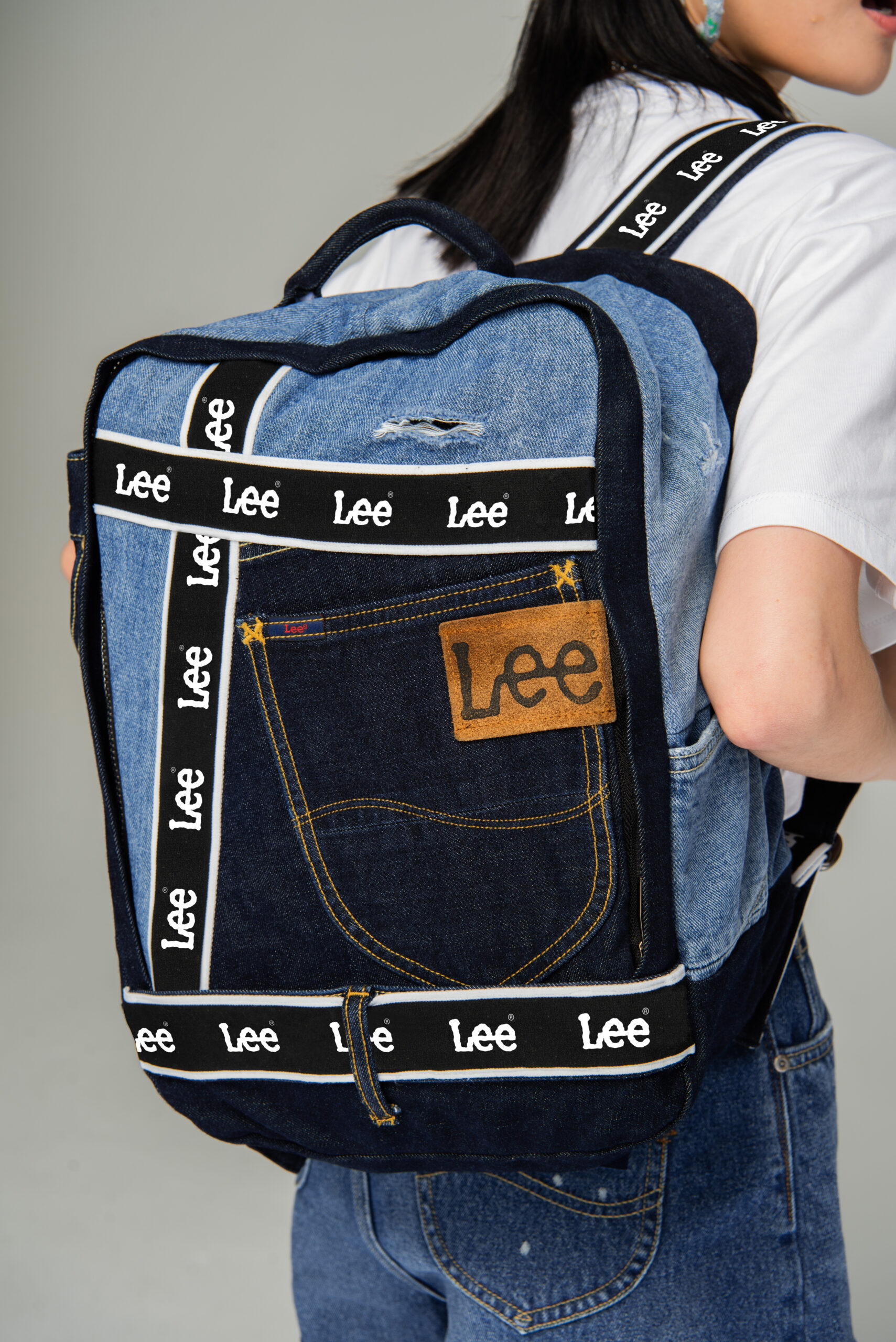 借此契机,Lee 通过裁剪、绗缝,为它们解构再重塑,将闲置牛仔裤「重生」为牛仔腿套、几何拼接托特包和牛仔拼接双肩包,让旧丹宁面料得以用全新面貌示人。