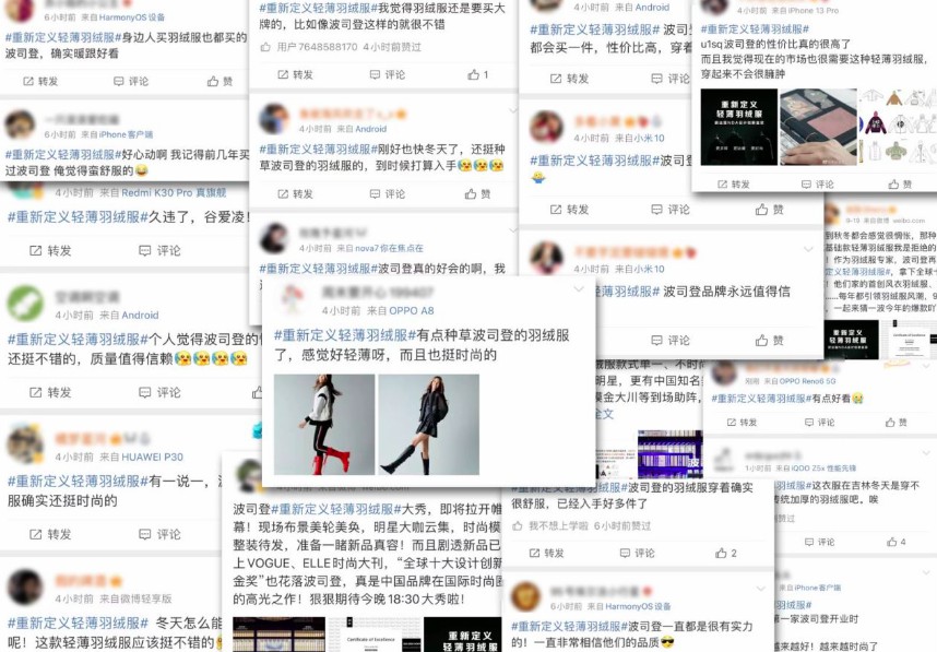 一场波司登重新定义轻薄羽绒服大秀的热潮来袭,让消费者们看见了轻薄羽绒服的更多可能,一时间波司登各大门店人头攒动,波司登成功打破了「羽绒服只能卖 4 个月」的传统,让轻薄羽绒服成为可以横跨一年三季的时尚单品。