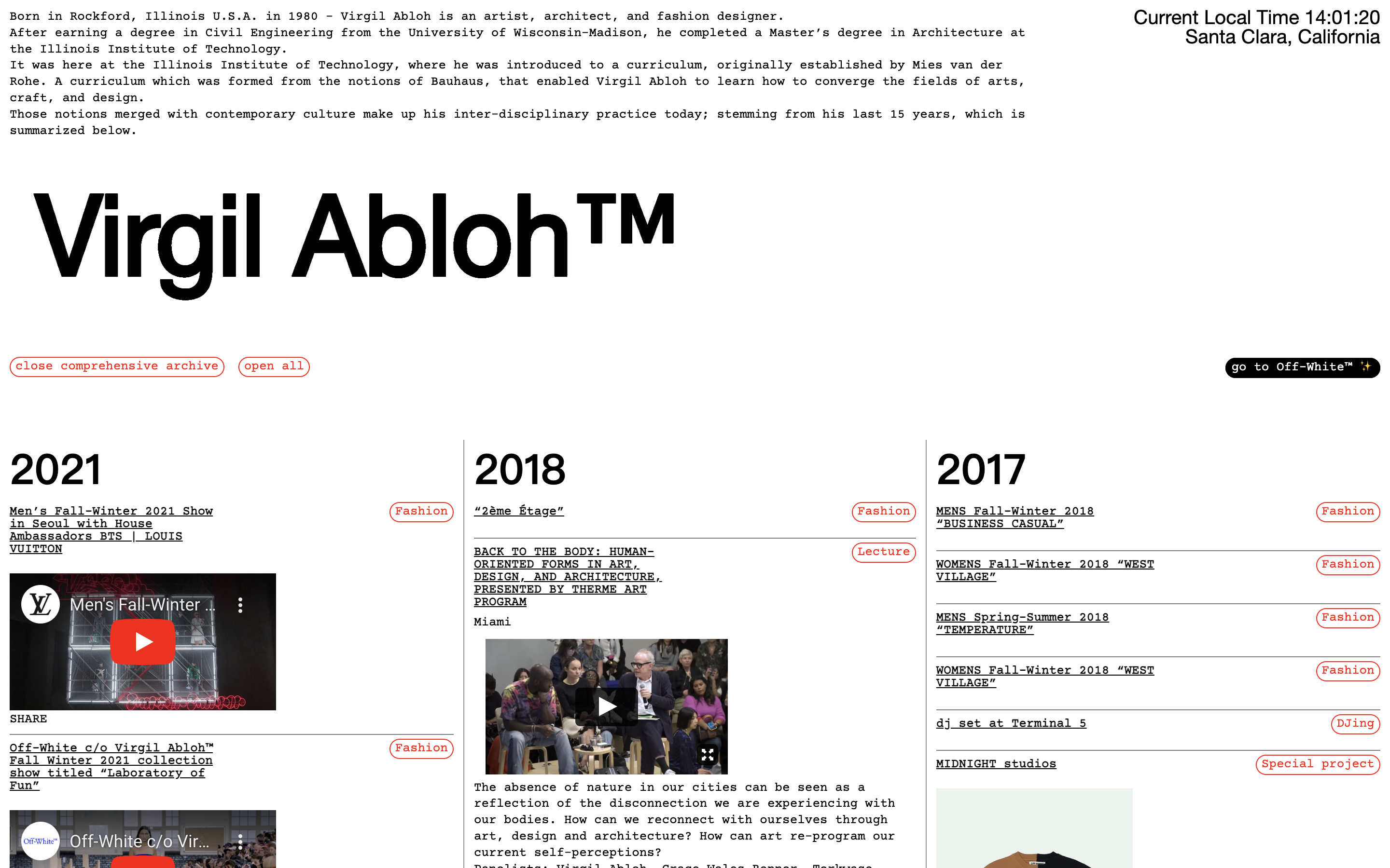 例如 fragment design、Travis Scott、BAPE® 等等当下频繁出现的联名常客,它们的企划系列口碑褒贬不一;但在 Virgil Abloh 的过往设计中,小到一个水瓶,大到一台汽车,Virgil 都会给出有说服力的背景故事和设计灵感,让你明白每一个设计究竟是为什么那样做,而不是简单的直接发售;所以一直到后续的产品,Virgil 都会保持在一贯的水准之上。在他的 canary—yellow.com 上面,你能了解到一切。