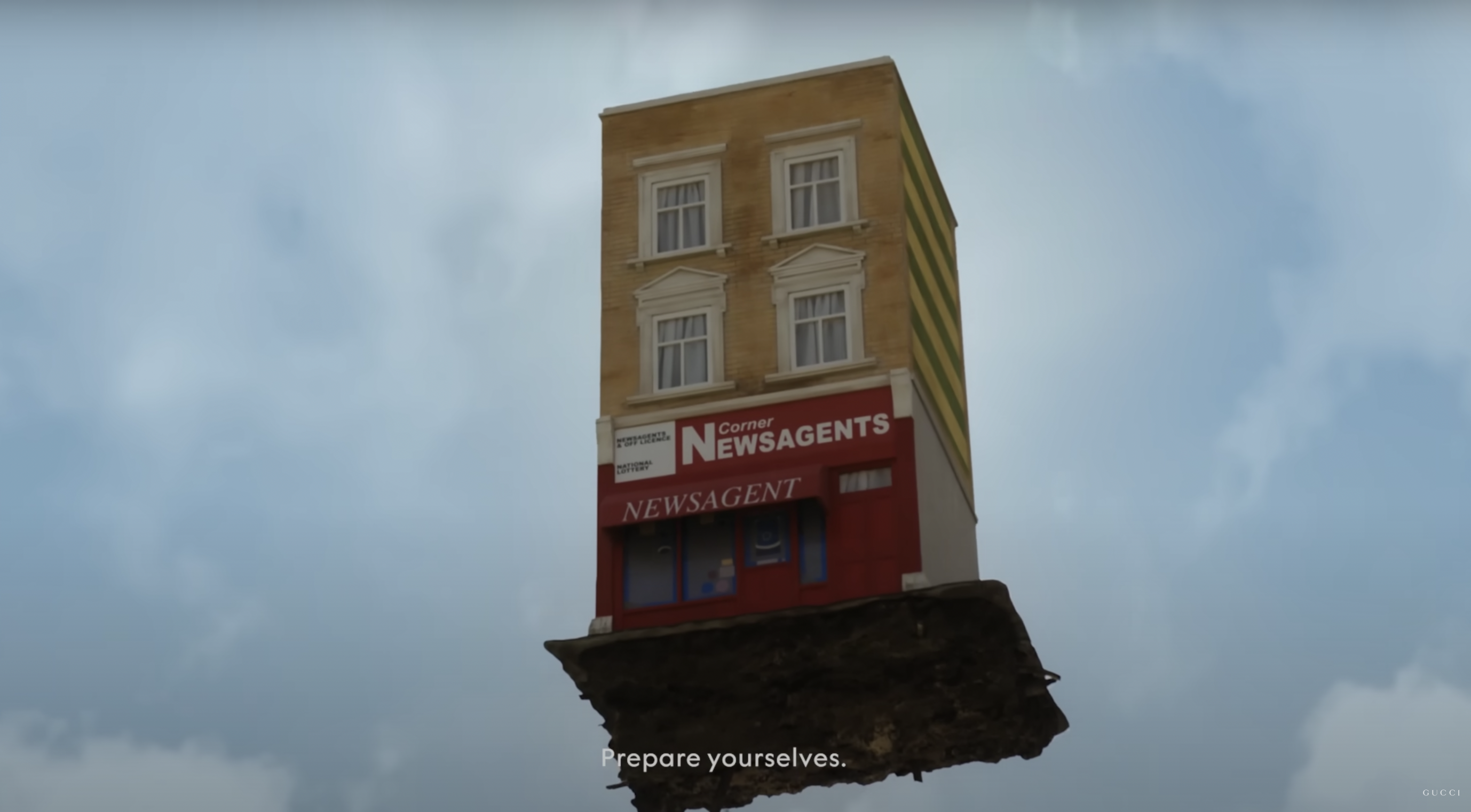 而后画面转向一间飘在空间的屋子,长而窄、颜色对称的房子颇有导演 Wes Anderson 电影的感觉。因与 GUCCI 创意总监 Alessandro Michele 美学都被视为「Geek Chic」,Wes Anderson 的作品常常成为 Alessandro Michele 设计上的灵感来源,因此这样的猜测也并非毫无道理。
