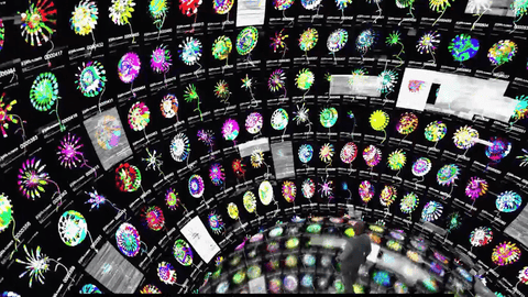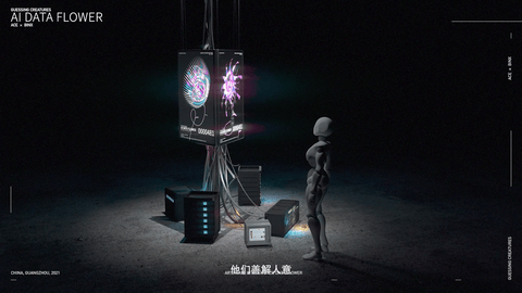 数字虚拟展览的后半部分,打造出神秘幽暗的氛围,让沉浸式的交互在此展开。花园深处的帷幔彼岸,是由新媒体艺术团队 Much More 创作的影像装置作品《情绪猜想花卉》。先锋的科技让作品具有可以感知人类情绪的功能,当捕捉到观看者的情绪或情感时,装置会对其采样分析和计算,以 3D 数字花卉的图像呈现,团队的艺术家认为「数字花卉的绽放意味着它所代表的情感的释放」,由此交互的层面由数字虚拟抵达情绪的共振。也正是通过这样的呈现方式,尝试去探讨情感与认知、人类与机器、虚拟同现实的关系,全面的提升了情绪的感知和表达能力,让虚拟所带来的对未来的无穷想象力感染着人们,带去宁静和治愈。不同于其他的数字装置,艺术家团队为植物打造的全新数字形态:冷峻炫酷的机械金属光泽、柔软的面料肌理质感…通过拟造出真实的质地,让科技交叠着真实进入体验者的感官和情绪之中。