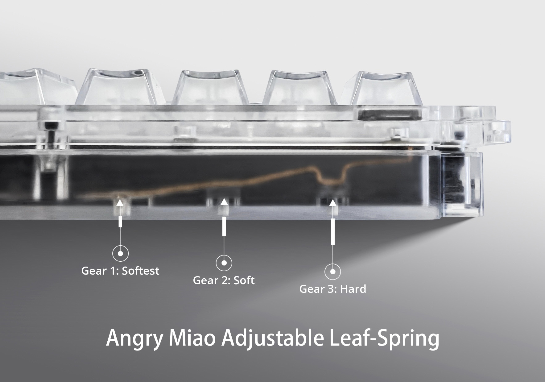 客制化的操作性,使得在使用机械键盘时恍如有了操作战斗飞行器的全新体验。Angry Miao 提供的两种金属弹片、一套底垫和两套调整垫,让 AM AFA 在不更换轴和键帽的前提下,可组合出最多 18 种不同的声音和手感,带来前所未有的敲击反馈和感受。