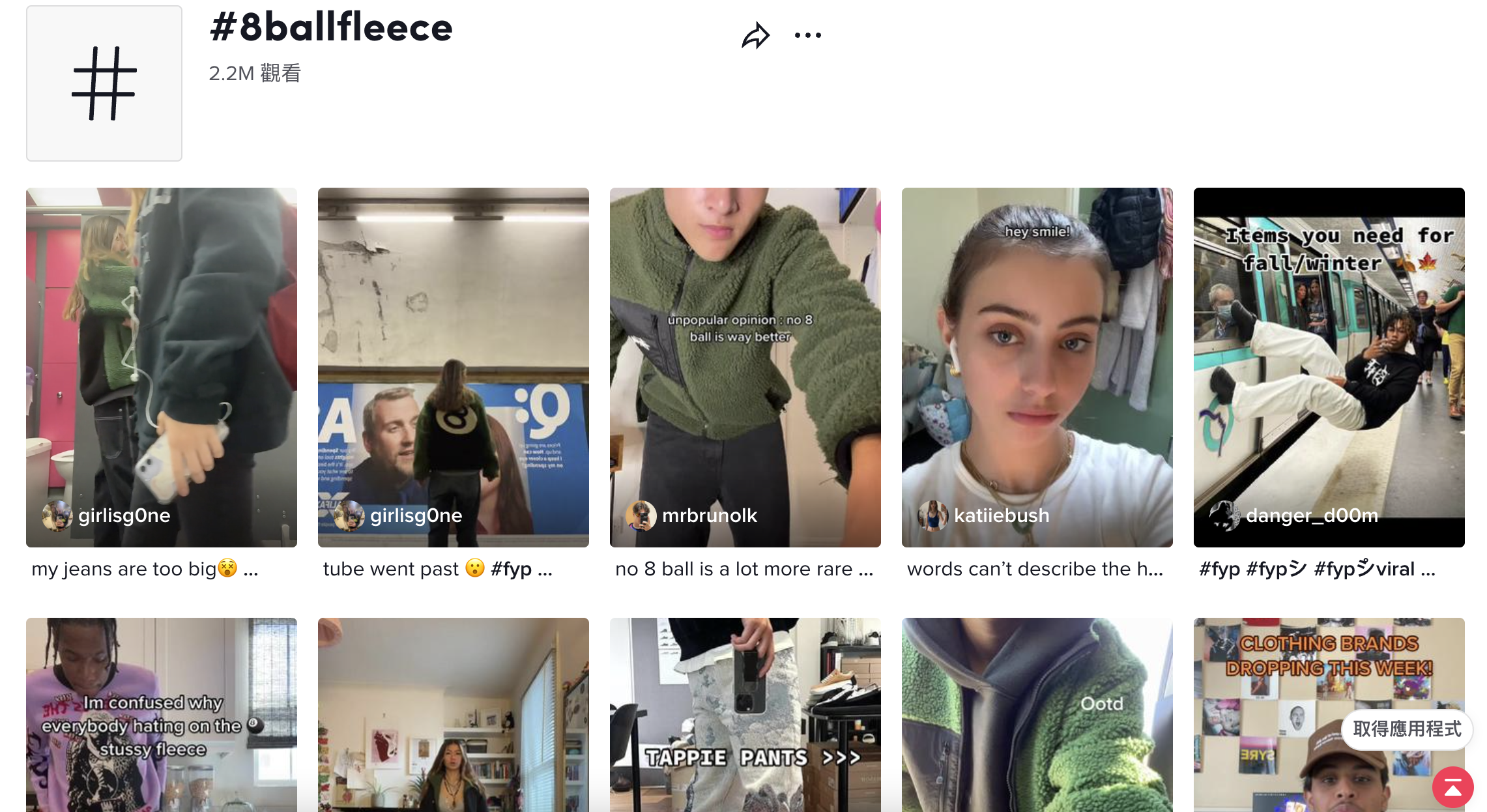 #8ballfleece 标签在 TikTok 有 2.2M 观看率 | Via TikTok