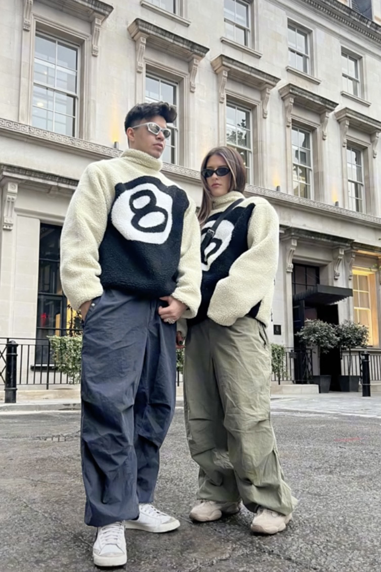 往后,Stüssy 推出 2020 秋季系列,其中一件背面带有 8 ball 图案的奶油色毛衣大卖,或许是干净极简的设计无其他装饰元素,反而更能凸显出 8 ball 标志的魅力,这样亮眼的设计还体现在最近的 8-BALL Sherpa 双面夹克,此番 Stüssy 分别推出绿、米白和橙三色,在 TikTok 的 #8ballfleece hashtag 引流下,这款 8 ball 摇粒绒外套火速售罄。