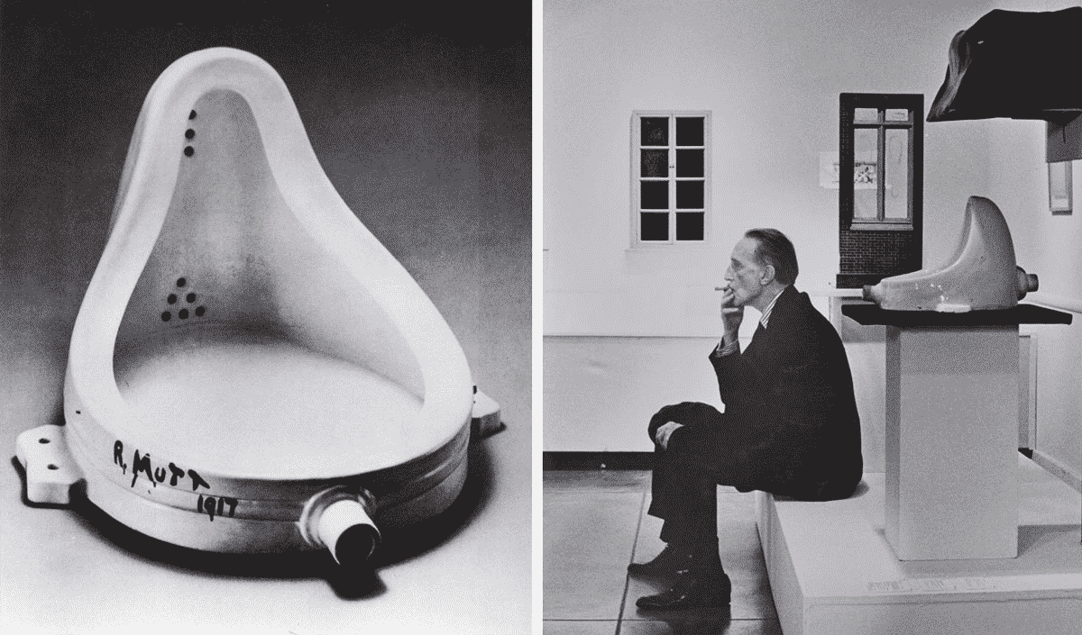 由此可见,这类无法给予穿着者舒适感的时尚单品,其背后的概念并不是为了实用而生。同时这种通过将「基本款」、「不被注意到的事物」以全新方式呈现,表达颠覆和挑衅态度的手法,与上世纪初的「达达主义」概念一致,后者最具代表性的艺术家杜尚当时以雕塑《泉》震惊整个艺术领域,将「现成品」—— 小便池脱离原本的功能性,提升到「艺术地位」。
