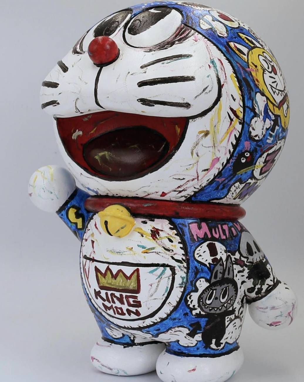 潮流的多元,在当代的青年群体中,所代表的不仅仅再是只局限于球鞋和服饰,广阔的视野和对新鲜事物的追求,让潮玩有了更多的价值。在龙家升看来也是如此,因此在他的创作中,不单有绘画的表达,潮玩让这些画作变得更为立体和生动,狂野的线条上附着上色彩,与玩家们对理想的向往、对有趣生动的 IP 形象产生着共鸣。在龙家升的多重身份之中,通过与不同品牌的潮流跨界,打造出醒目的 IP 和互动的生态圈。
