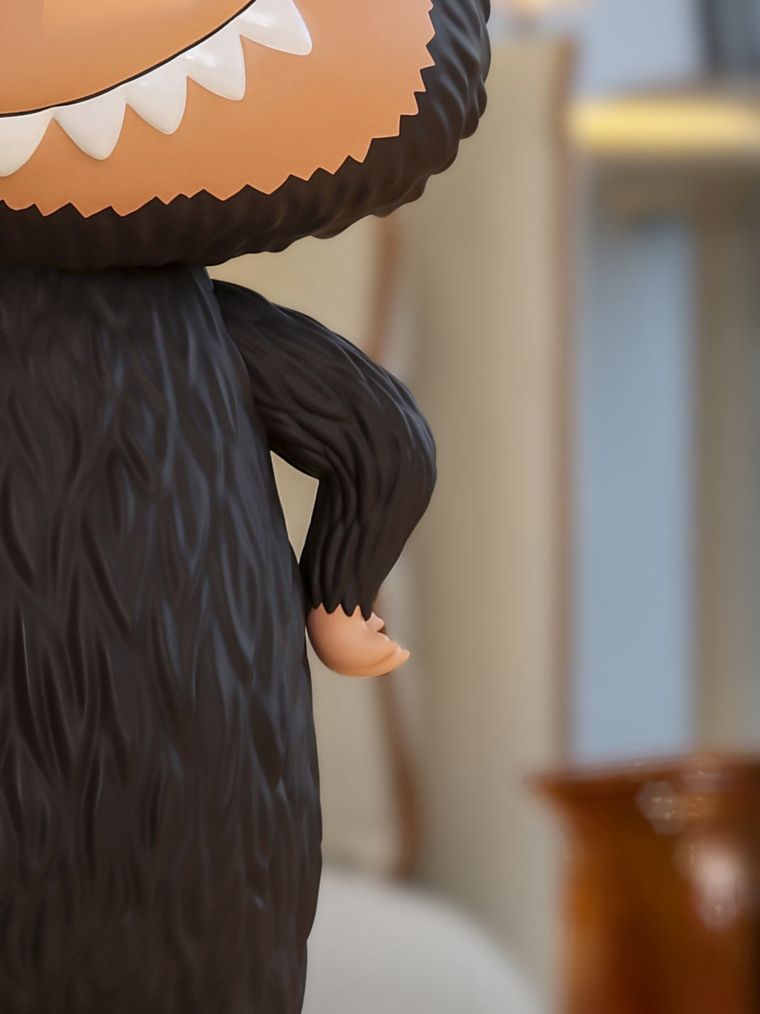 潮玩在当下,成为一种新的生活方式和文化现象。泡泡玛特 MEGA LABUBU TEC 1000% 小雀斑以经典的 LABUBU 形象设计,尖锐的精灵耳展示着她的活泼个性,生动鲜活,双目炯神仿佛对一切事物都充满着好奇。在 MEGA LABUBU TEC 的生来好奇的个性之中,彰显着对世界的「窥探」和「凝视」,生物与人类的关系在自然史中的微妙,都凸显在她身体 3D 得毛流质感中,对世界的感知不仅仅依靠五官,毛发的反应更能真实的显现出态度。幻想中的精灵形象,却依旧有着天真无害的一面,微红的脸颊上装点着散碎的小雀斑,带着一份稚嫩和天真,锋利的牙齿有着自然的野性,又代表着她的活泼捣蛋的个性。龙家升在创作中,尽可能的拟真,还原动物的诸多特性,也将幻想的生物形态纳入,让 MEGA LABUBU 从奇妙世界中窥探着这个陌生且有趣的世界。