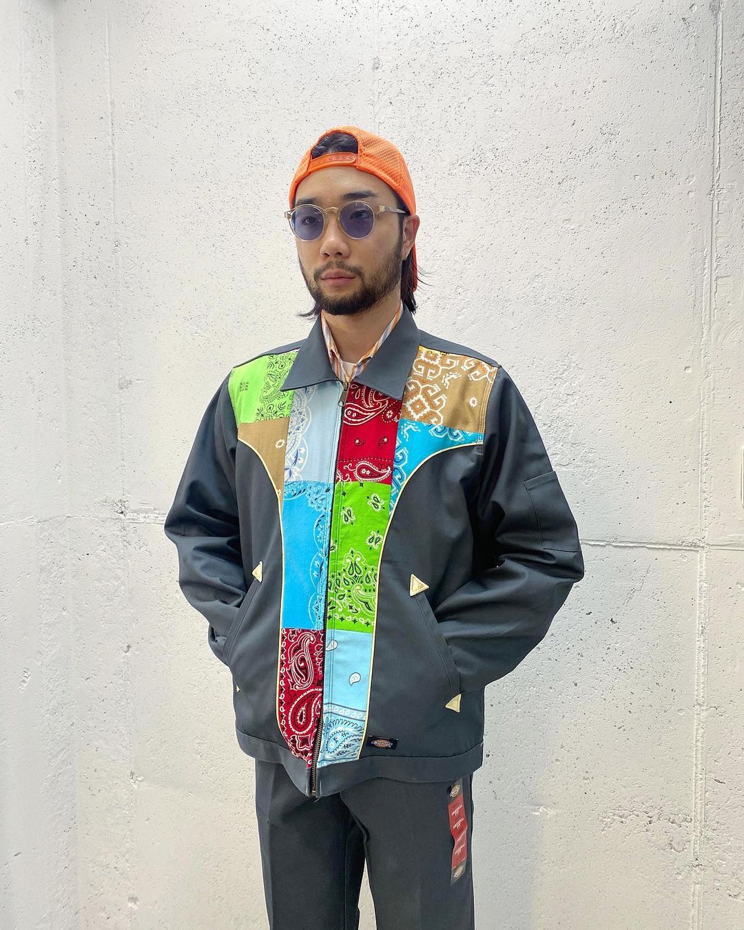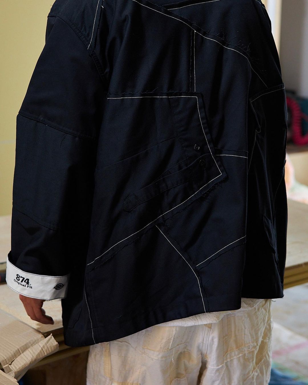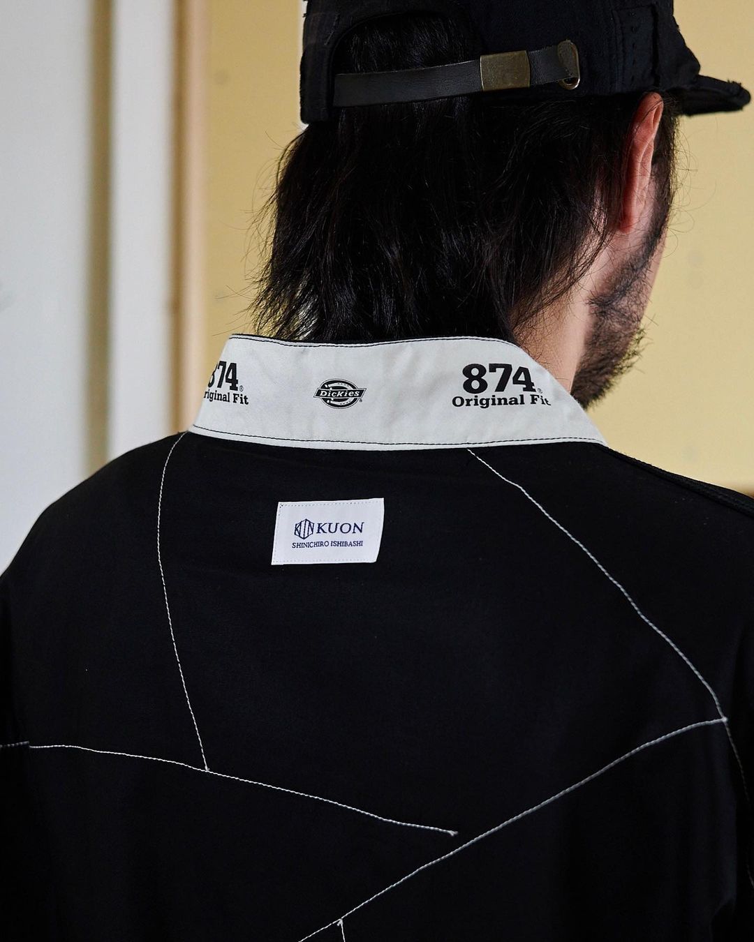 由日本小众设计师品牌 KUON 主理人 Shinichiro Ishibashi 打造的这件 Patchwork Reversible Jacket,对 Dickies 574 工作衬衫进行了剪裁再重新拼接,领口、袖口部分则来自于 874 工装裤的腰部内衬。其整体的轮廓剪裁实际上源自于日式的传统工装,因此也就有了「From workwear to workwear」的设计概念。