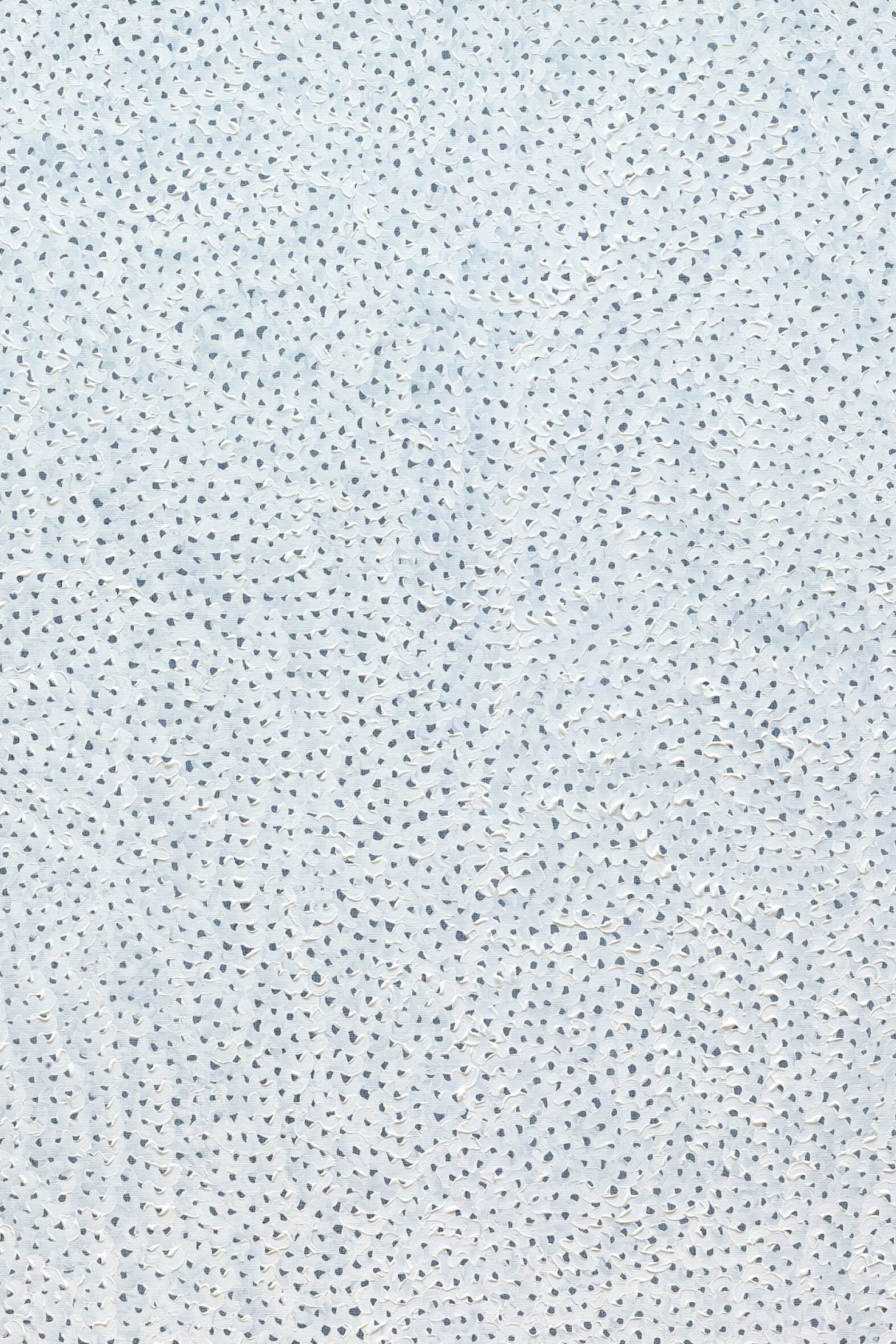 我们从草间弥生的语录、作品中得知,永恒是她常见的创作命题。回到如《无限网》系列等作品本身,高彩度对比的圆点「投射」在绘画中,它们细小如分子般无序漂浮,又如细胞一样有序地形成某种形态,承载着这些波点的媒介从绘画、雕塑到空间装置,我们依然能从中感受到生命力的狂野,无限涌动,从固定的媒介扩散至世界各地,甚至无穷尽的宇宙中。