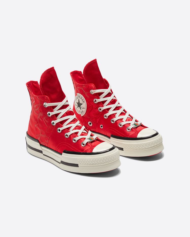 本次共推出五双鞋款,包含有经典不衰的 CHUCK 70、视觉加大的 CHUCK 70 PLUS、机能感的 CHUCK 70 AT-CX、暗藏多个彩蛋的 CHUCK 70 MARQUIS 以及今年颇具人气的 RUN STAR MOTION CX。在整体的设计上 CONVERSE 将传统元素(中国红、篆书文字、暗纹图案)与新玩法(可拆卸贴片配饰、拼接、隐藏式钱币)相结合,用趣味的方式贴合新年玩闹的主题。