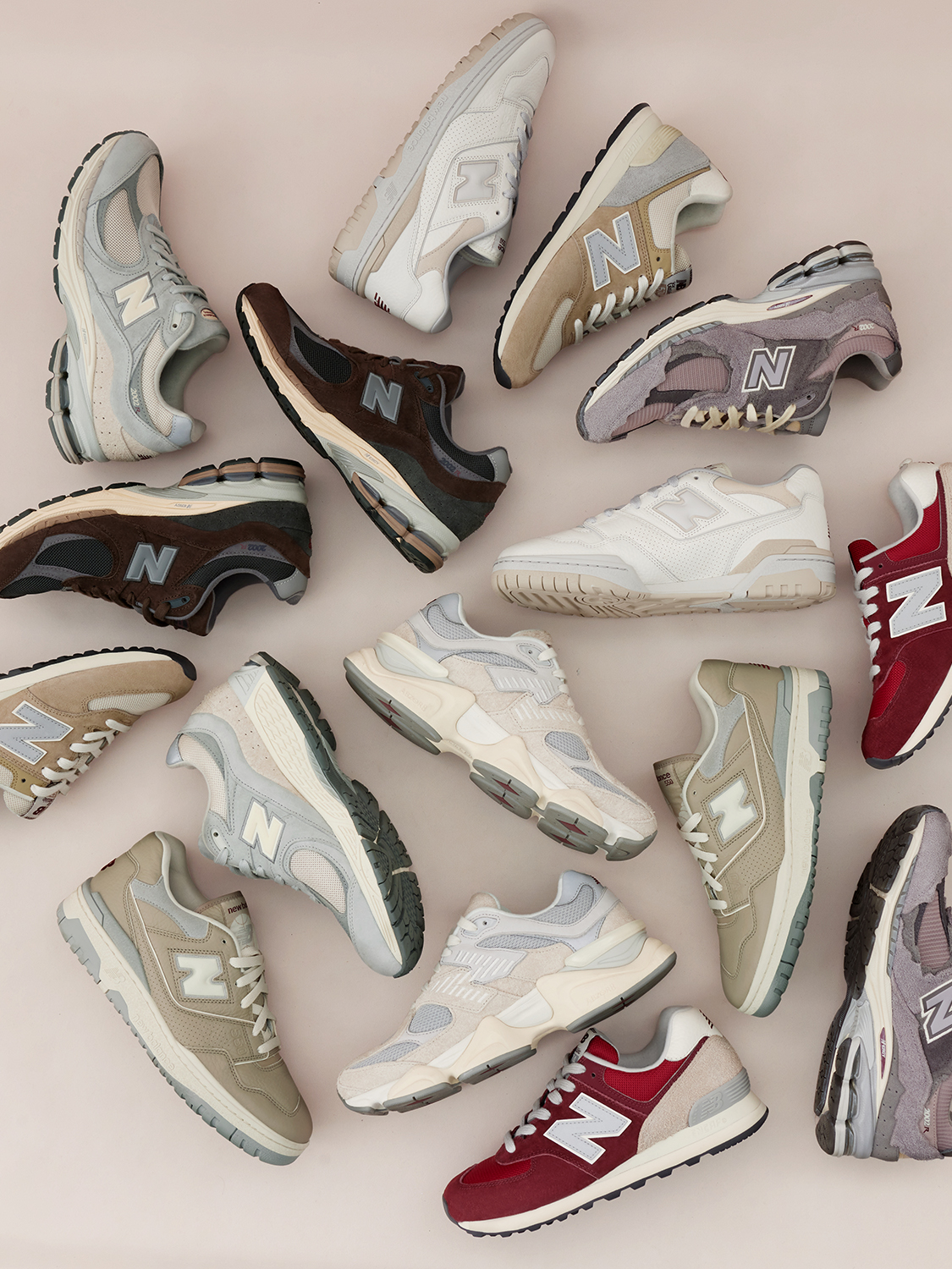 系列中包括人气不错的 2002R、2002R Refined Future、9060,经典的 574 鞋款,以及被重新带进人们视野中的复古氛围款式 550。全系列通过灰色、米色、奶油色等品牌经典色搭配深石榴红、巧克力色等精致氛围色调表达出新年将始的温暖氛围。