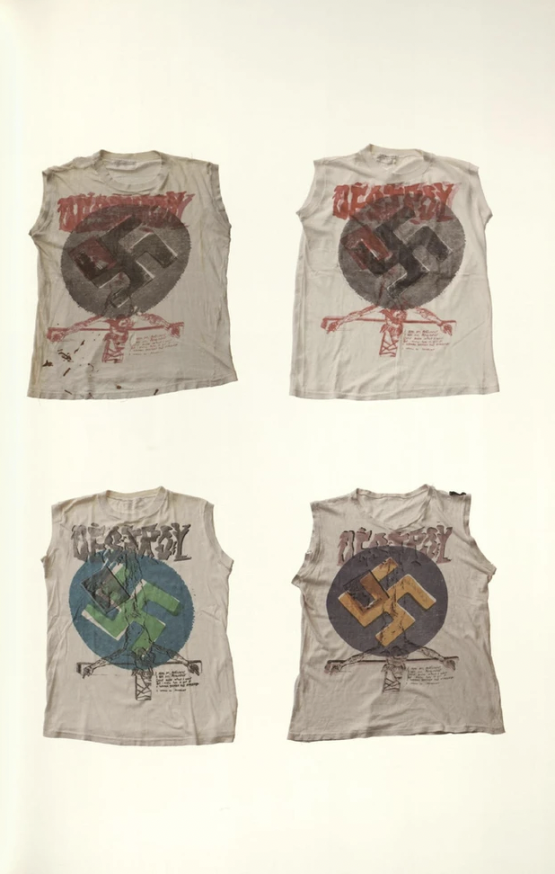 在前文已说到,从「Too Fast To Live,Too Young To Die」开始,Vivienne Westwood 受到 Malcolm McLaren 的思想启发,开始创作带有煽动性标语的 T 恤或衬衫,延续至后来在「SEX」和「Seditionaries」时打造的「Gay Cowboys」T 恤、Anarchy 衬衫是后世朋克品牌最爱引用的作品之一。