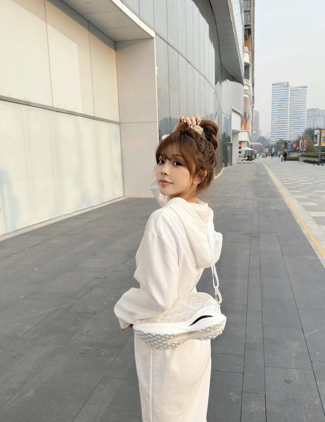 鞋挎包与王鹤棣擦出的这朵奇妙火花并没有就此沉寂,鞋挎包陆续出现在了各大潮流穿搭博主的照片里。无论是搭配白色的休闲夹克外套,还是搭配各式各样的运动套装,鞋挎包都是整套穿搭中一眼就能 get 到的吸睛单品,趣味性十足,为日常穿搭增添几分潮酷和出彩,不知大家能否从这些照片中感受到鞋挎包的独特魅力呢。
