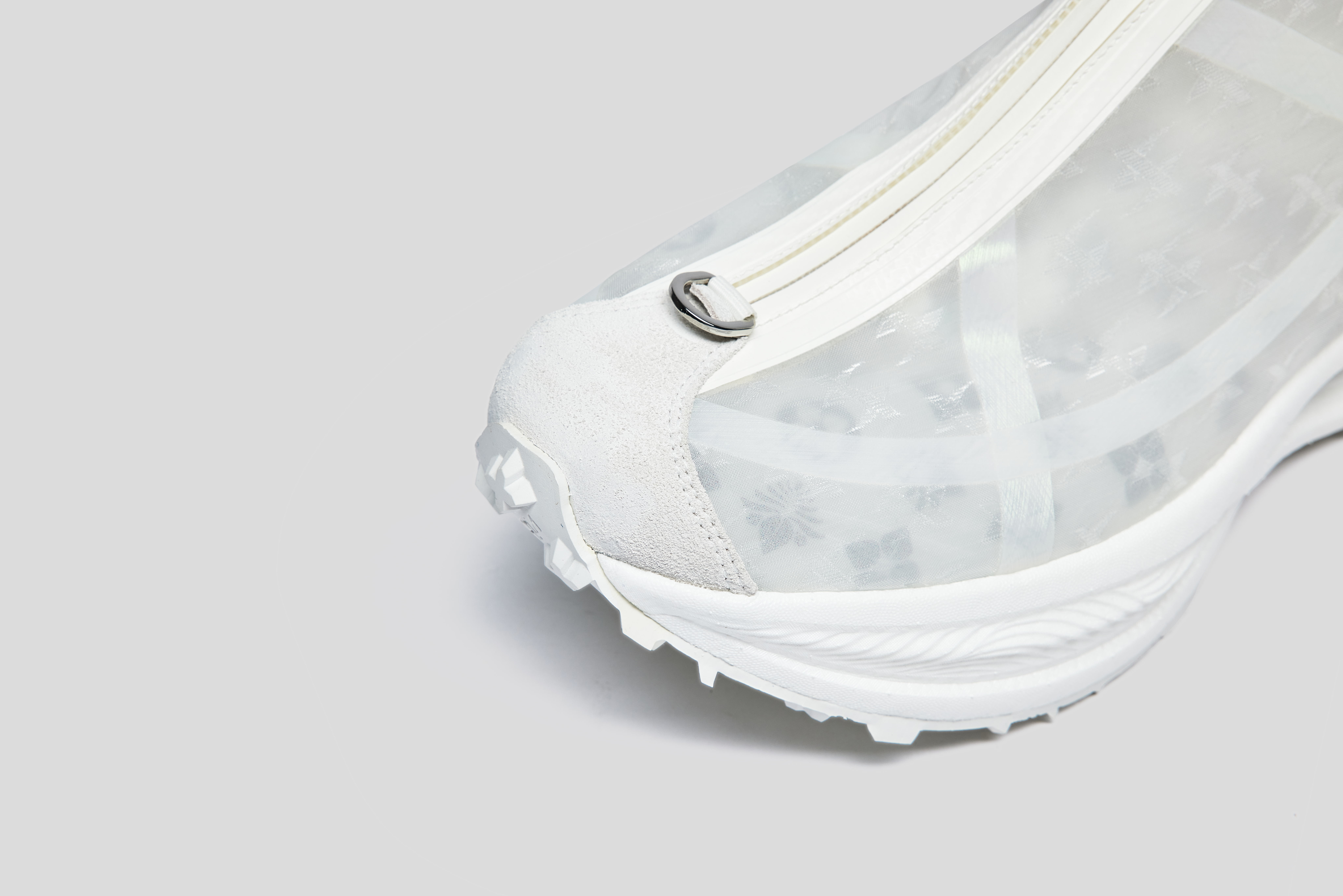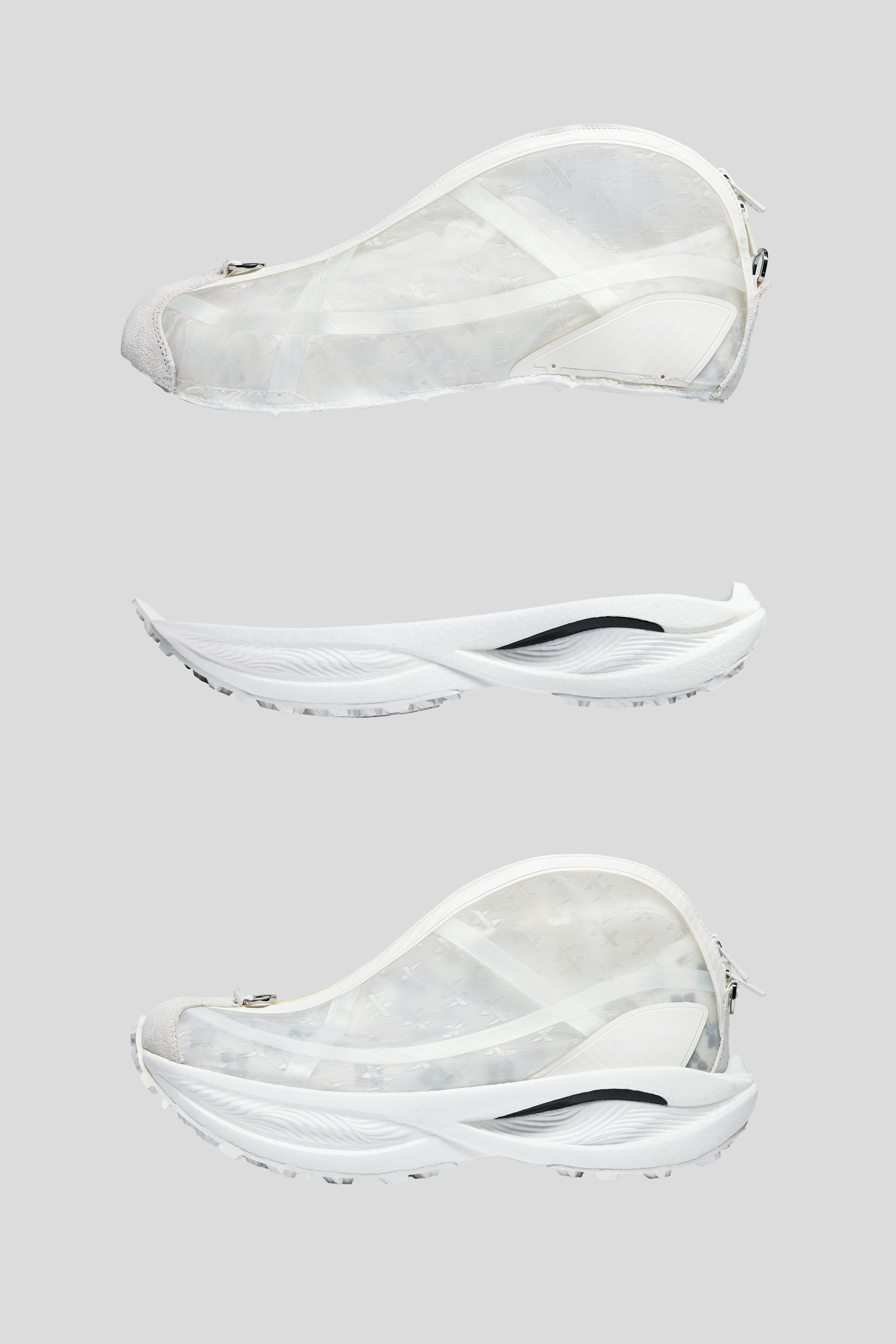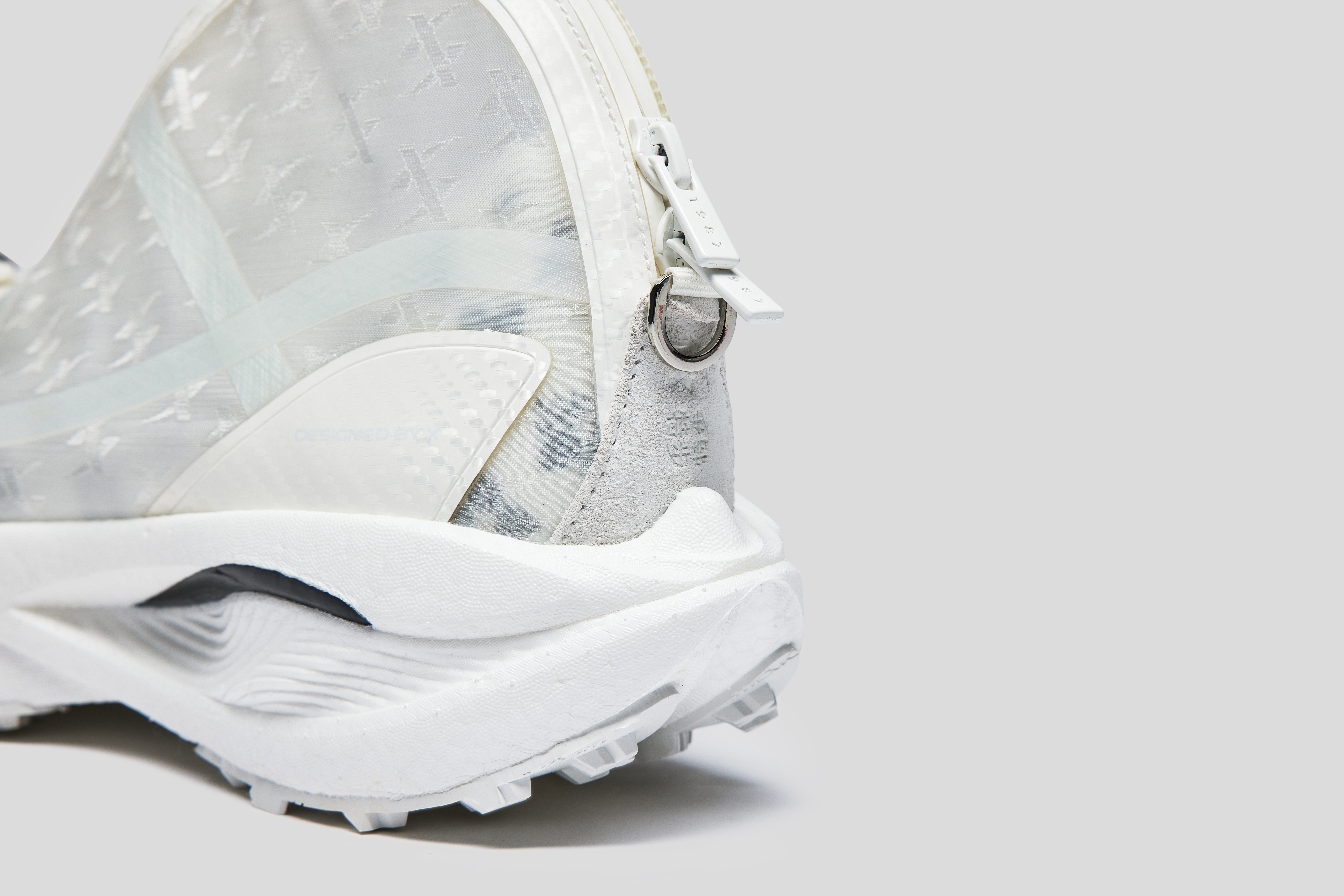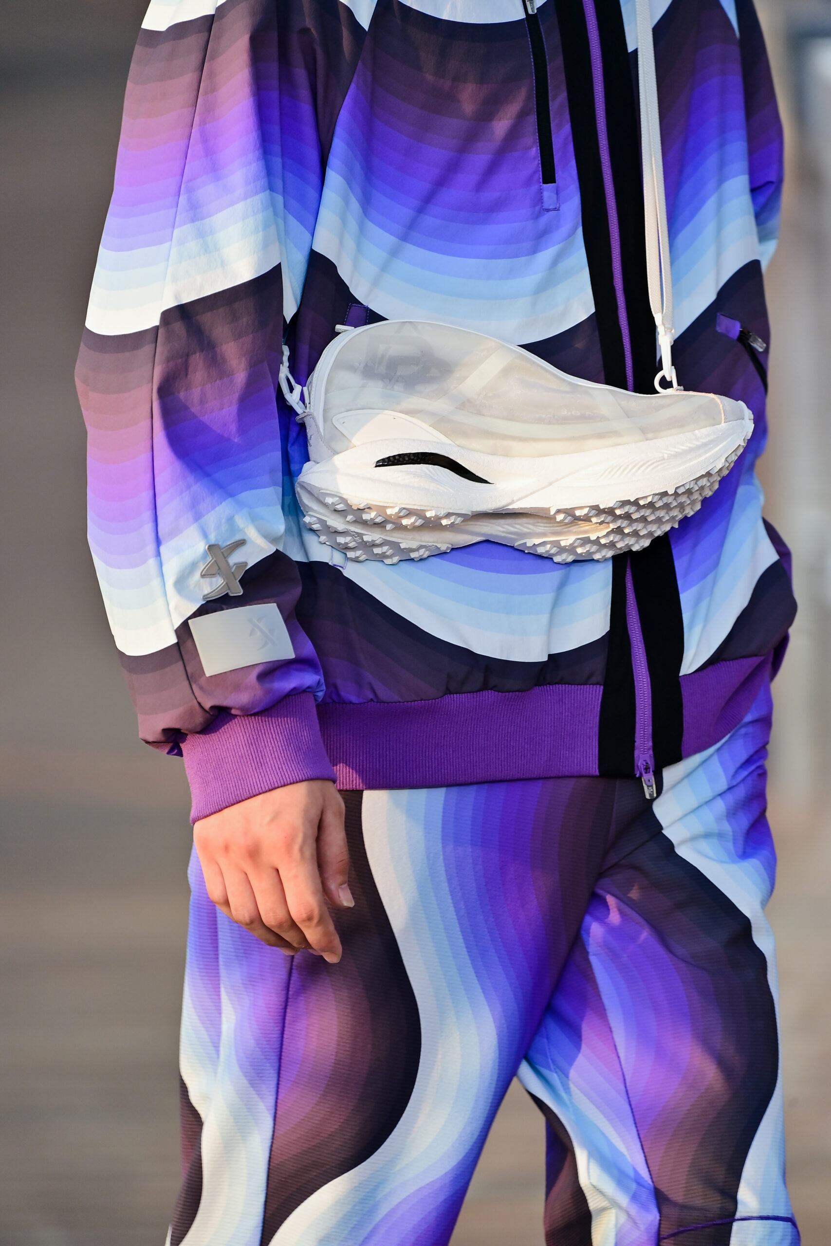 科技与潮流相互碰撞、相辅相成,才有了鞋挎包这一极具概念性和实验性的吸睛单品的诞生,鞋挎包不仅是特步 X 建立于新奇想象的最佳表达,也是特步在专业科技领域不断深耕的结果显现。