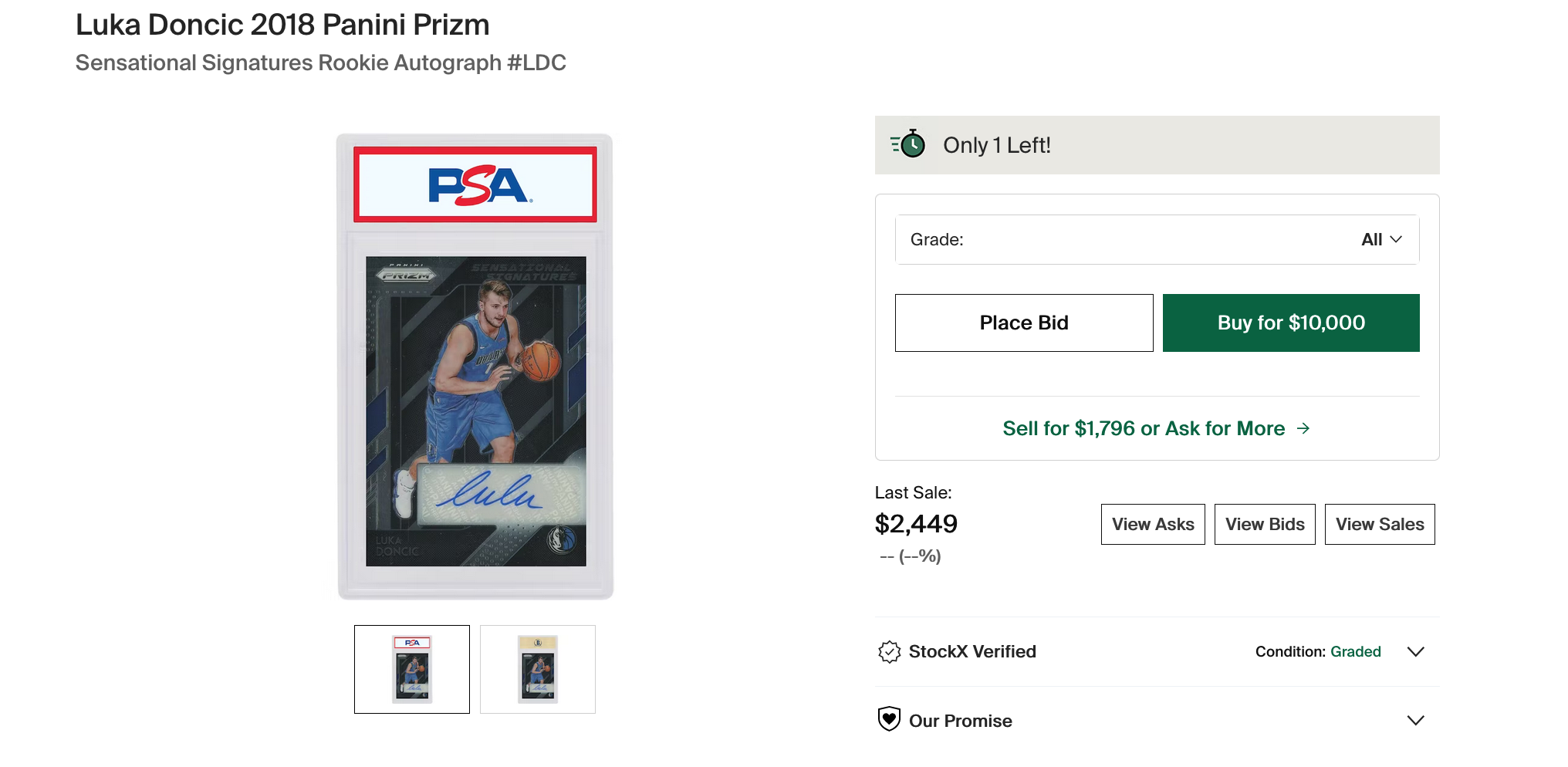 卢卡 · 东契奇的 Panini PRIZM 新秀签名卡价格高悬,上一次以 2449 美元的拍卖成功 | Via StockX