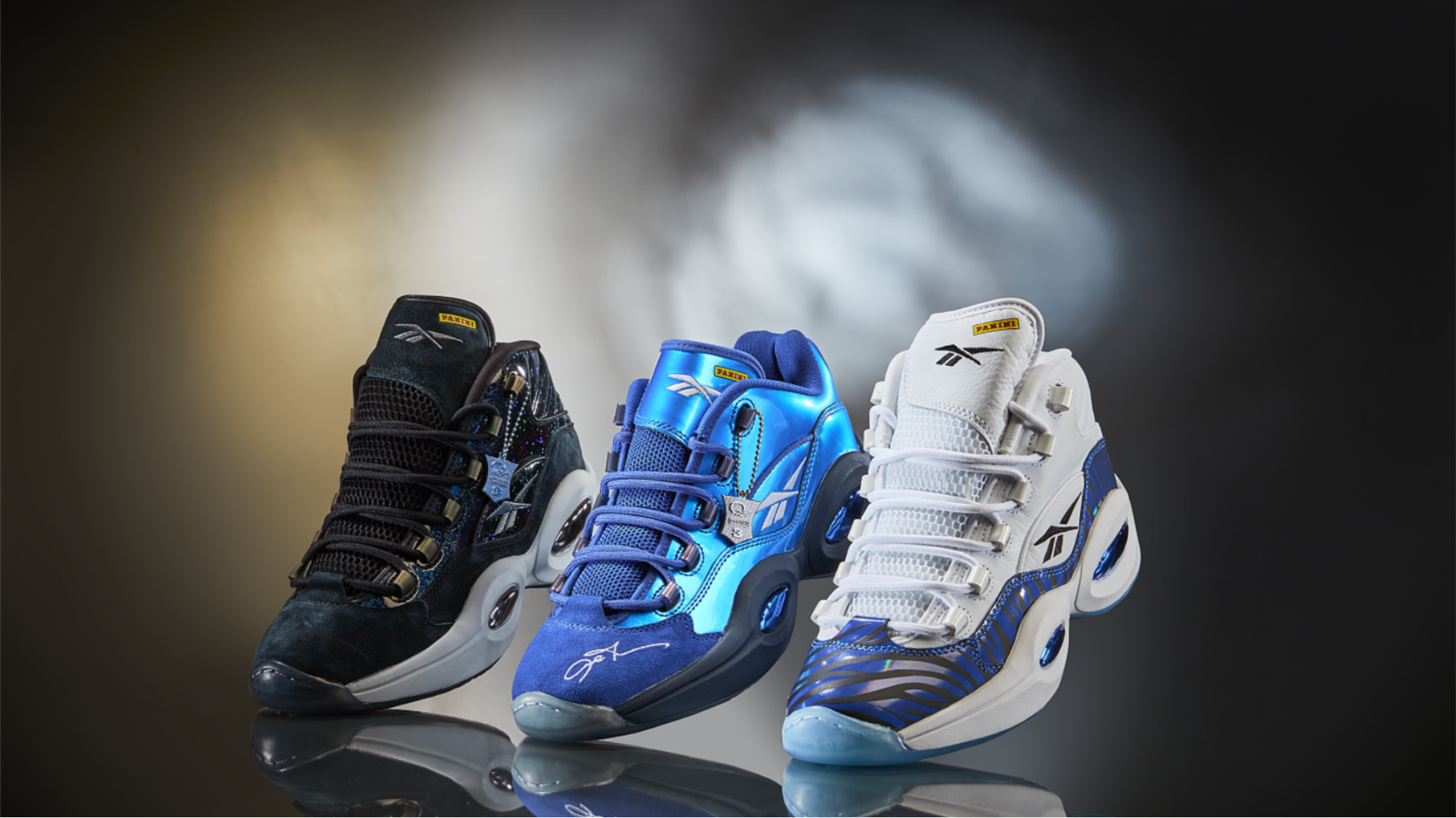 Reebok x Panini America 合作系列以 Allen Iverson 艾弗森的经典复古篮球鞋款 Question 为原型打造。Reebok 的 Question 是艾弗森初登球场时的首款签名战靴,并伴随艾弗森的职业生涯中屡克强敌,见证其一步步成为联盟的传奇,鞋款自身也成为 NBA 乃至篮球史上重要的文化符号。