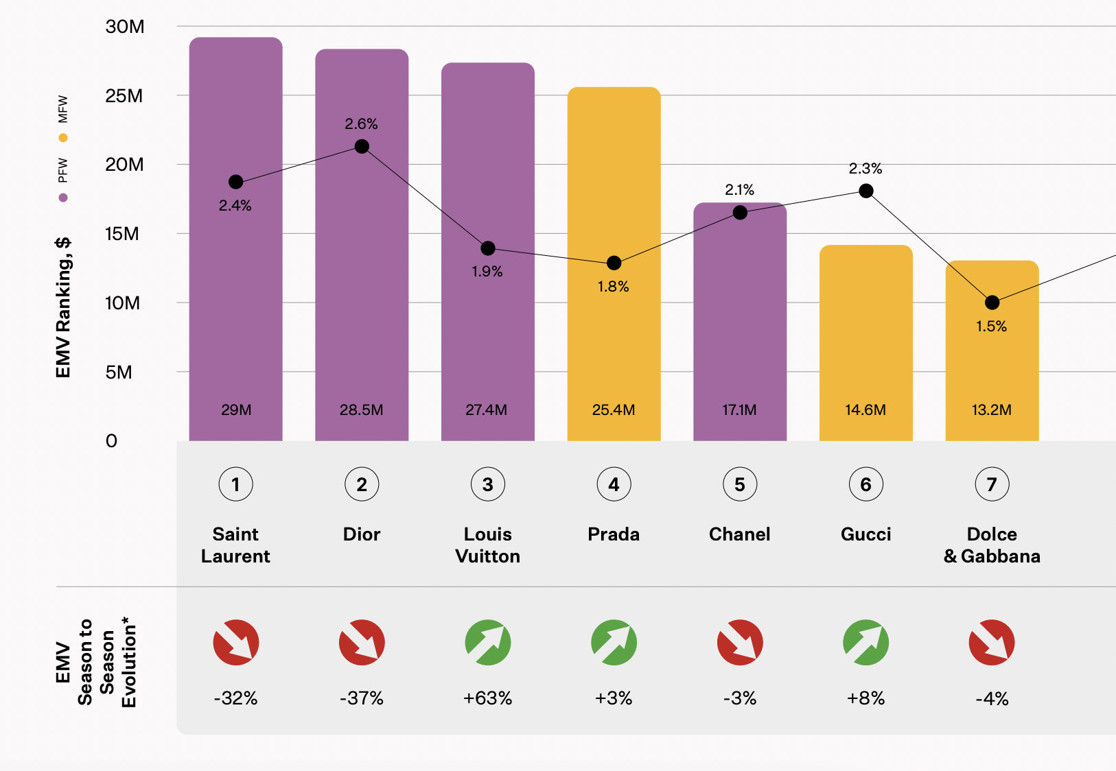 2023 秋冬时装周中,品牌 EMV 排行榜 | Via Karla Otto