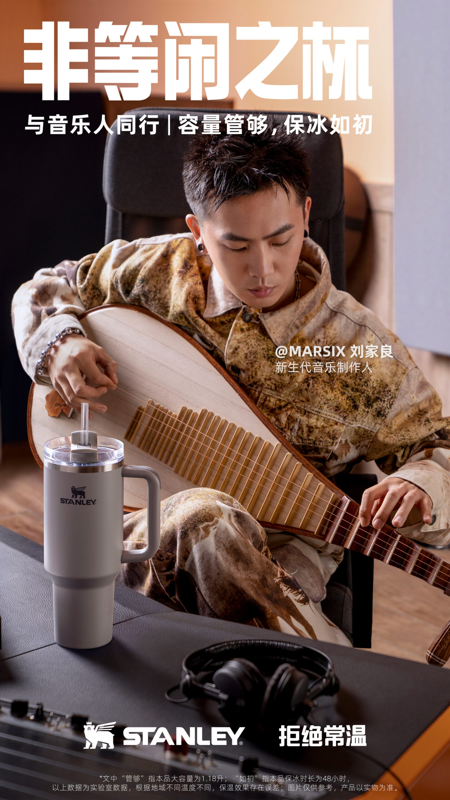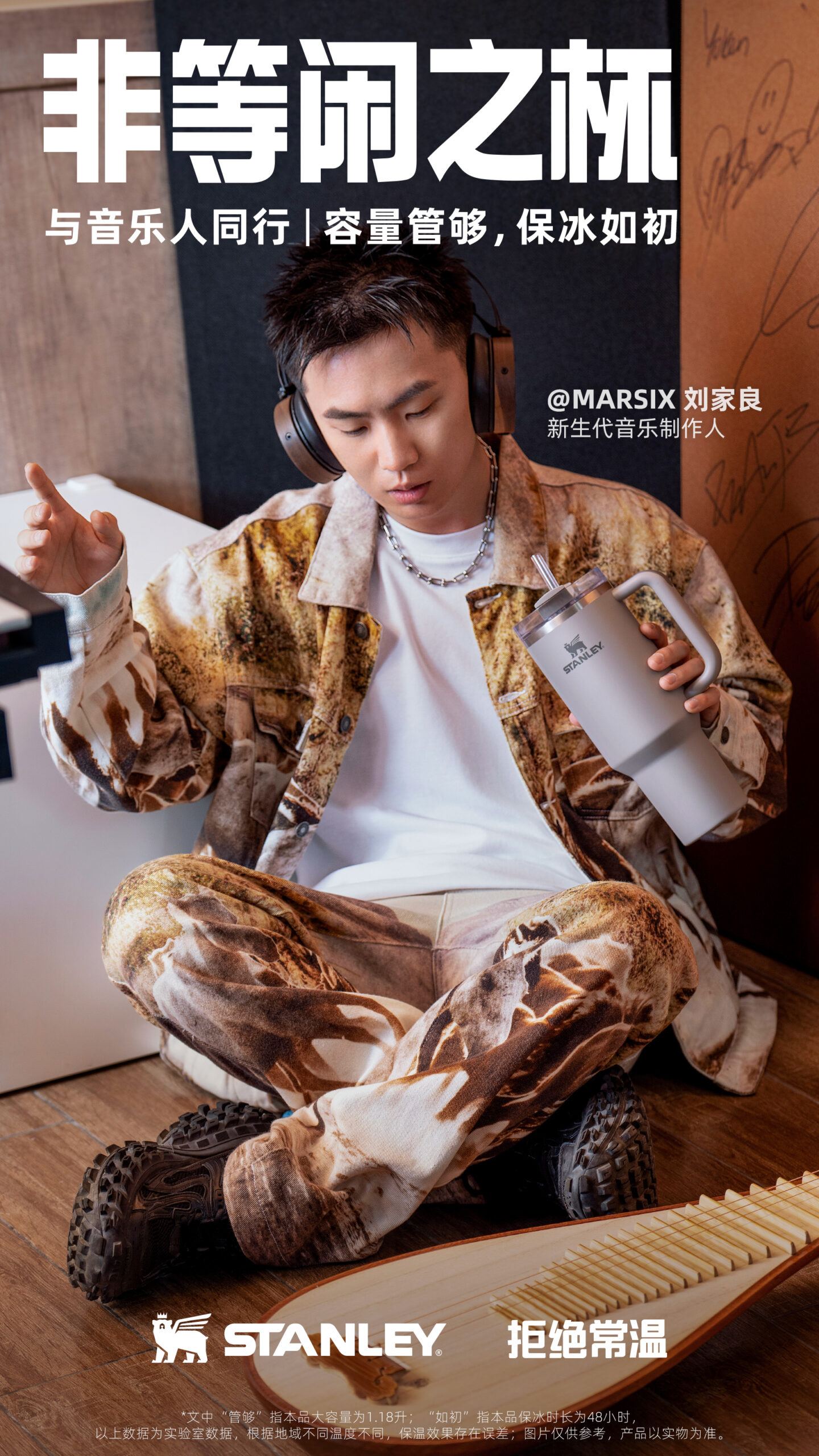 当东西方音乐文化交流、碰撞、融合,音乐便具备了温度,MARSIX刘家良对音乐的坚持和纯粹,对生活的认知,都随着其独特的旋律和节奏注入听者的大脑,带给人感动与共振。这种鲜明的个性态度正好与 STANLEY 大头冰杯的风格标签相呼应,不断重塑创新,拥有舒适体验以及潮流色彩的 STANLEY 大头冰杯已经成为众多年轻人的身份标识。