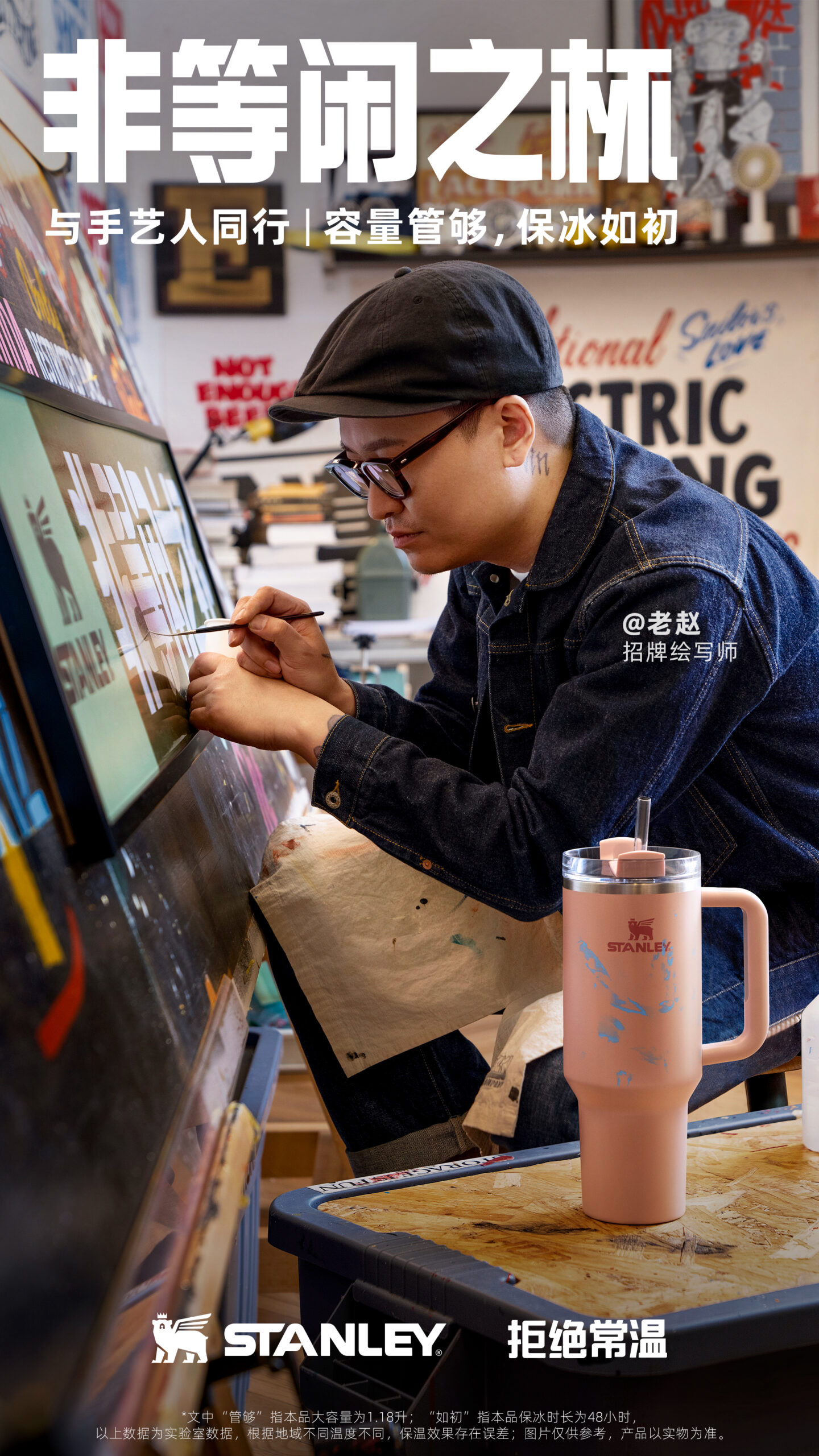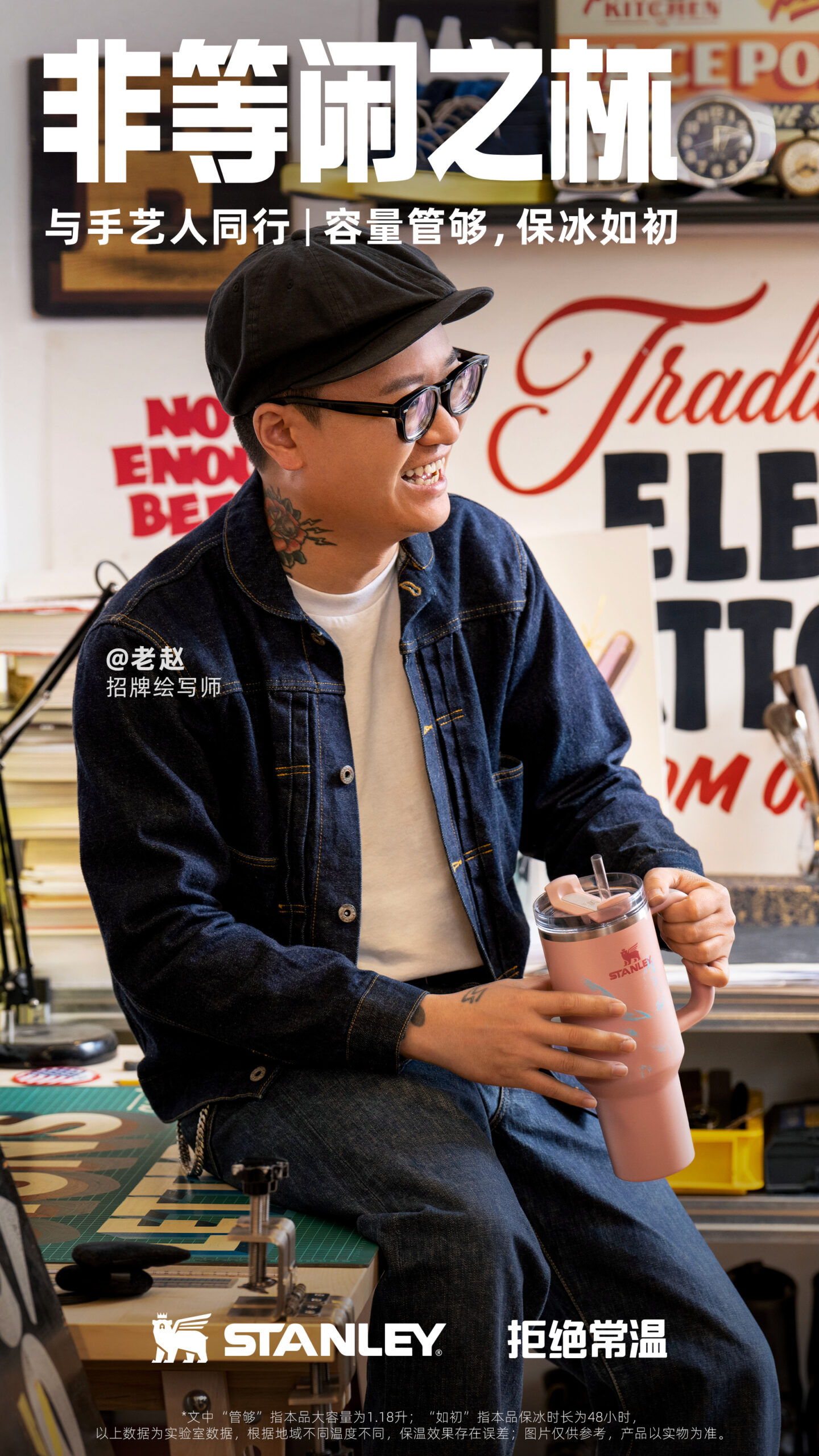 老赵通过非凡的手绘技艺,为平凡的东西赋予功能,传达信息,与更多的人产生交集与共鸣。这份对于创新的固执与坚持,也流淌在 STANLEY 大头冰杯的血液之中。一直以来,STANLEY 大头冰杯都在用大胆的流行色彩和吸睛外观,打破传统保温杯的定义,重塑人们的生活方式。