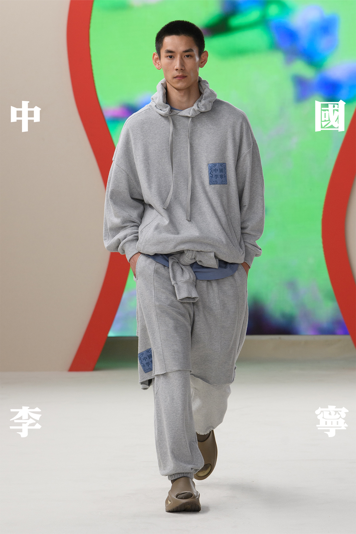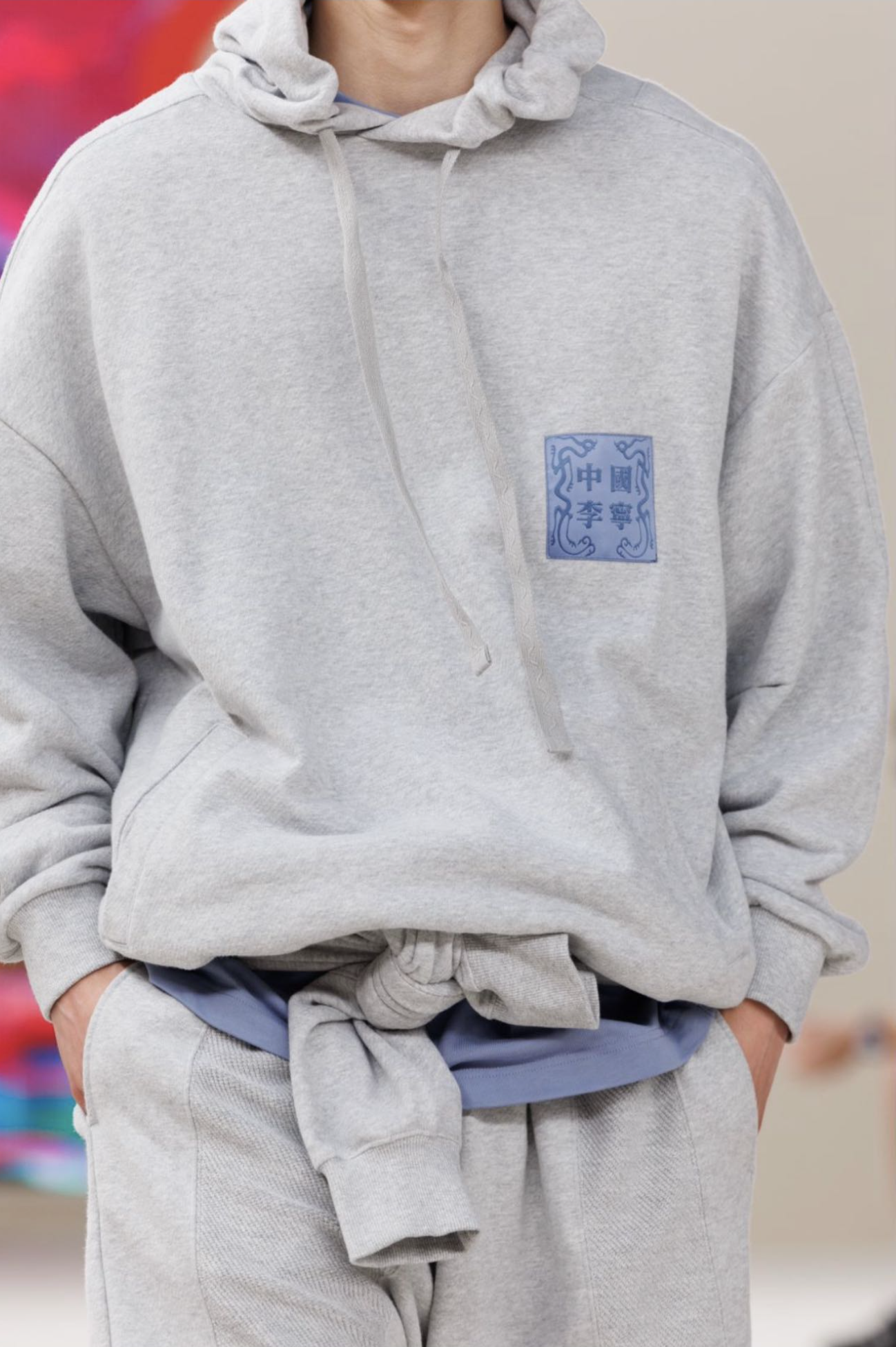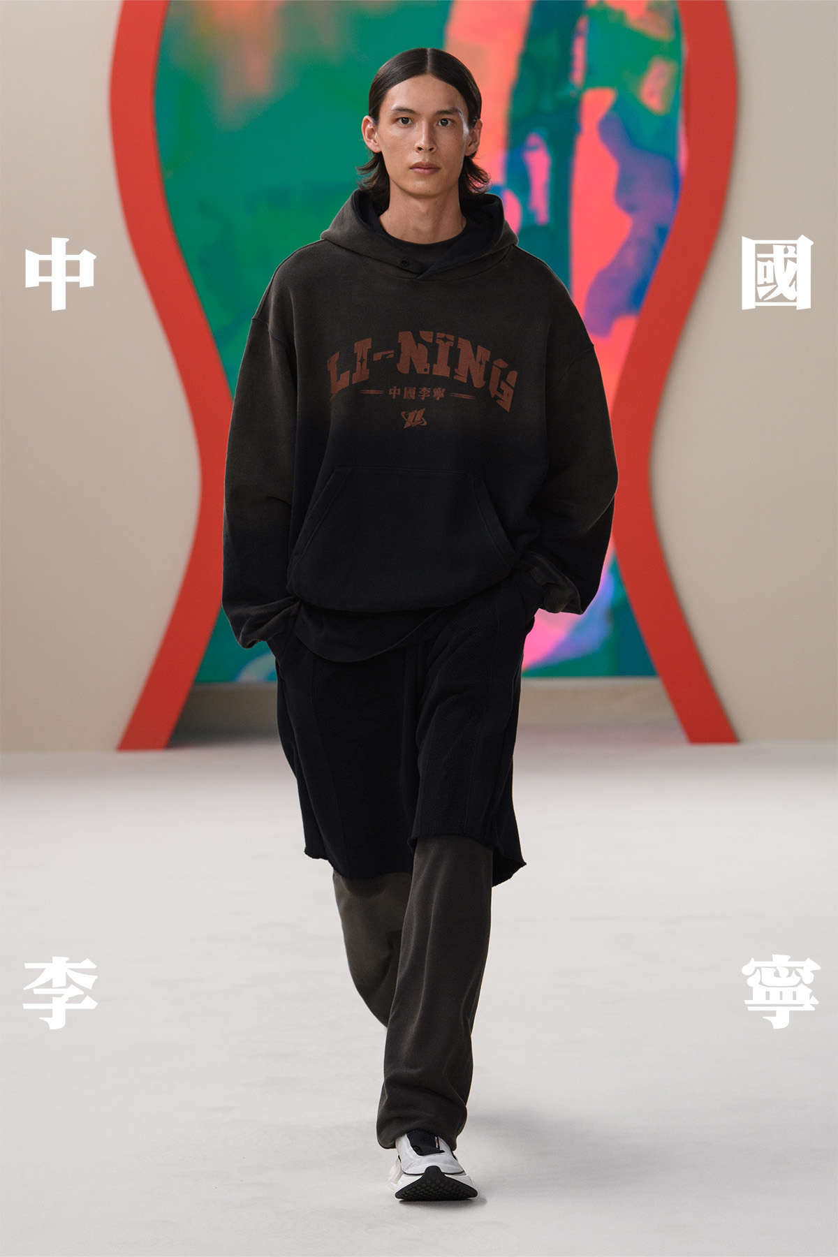 除了上述作品,本次秀场中其他每一套造型,也都将中国李宁「于传统中释出新意、将看似反差的元素予以融合」的开创性美学理解,在不同细节中深度浸透;即便如原生运动感连帽卫衣此类看似基础的单品,中国李宁也用全新演绎的龙纹包围 Logo,为我们留下了呼应龙年的「小彩蛋」,此中精巧心思与诚意,可见一斑。