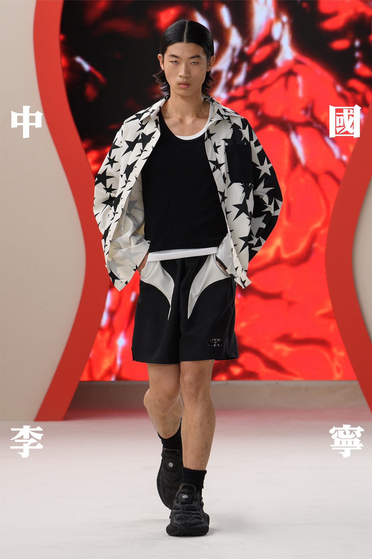 探索实验性概念美学的尼龙雨衣单品、提取自昆仑山脚下出土的「汉代织锦护臂」上五星元素的服饰……不胜枚举的种种暗藏细节的不同风格成衣,都让人看到了一个在「探寻无界创新」和「深挖历史文化瑰宝」两方面都不知疲倦作出突破的中国李宁。