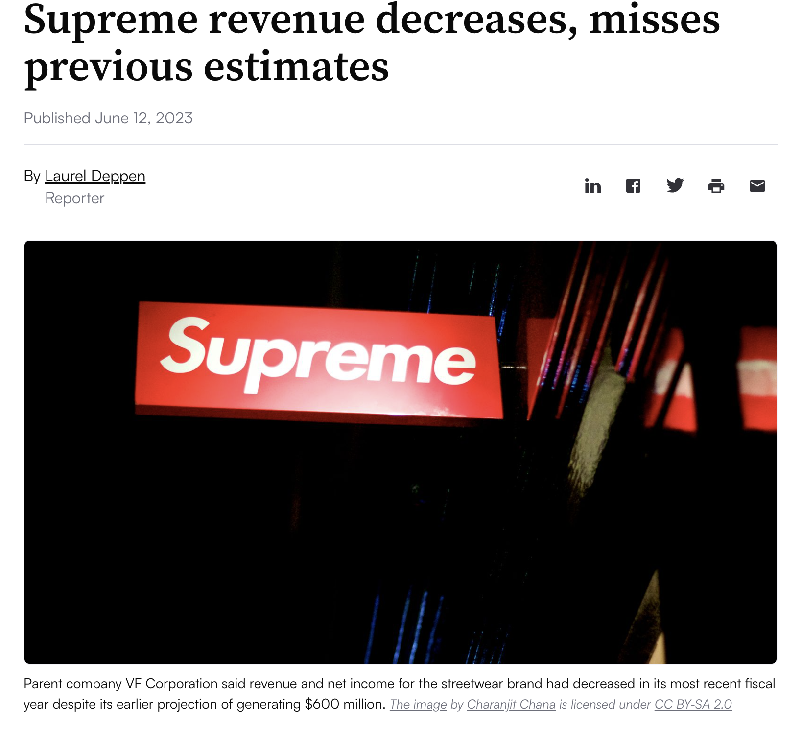 Supreme 截至 2023 年 3 月的财年收入与净收入较去年同期均有明显下滑 | Via FASHION DIVE