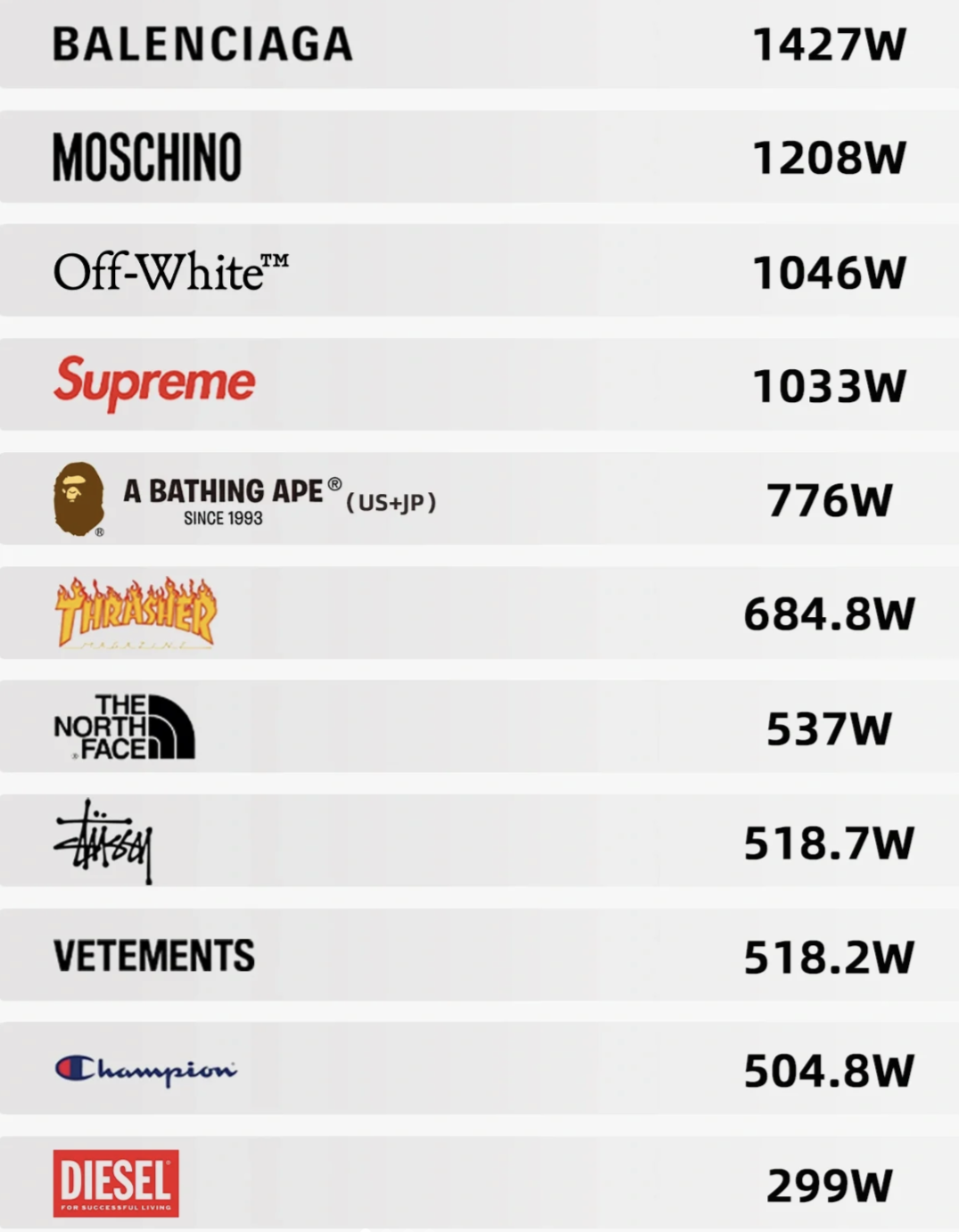 网友制作的截止今年 6 月各品牌 Ins 账号粉丝数,以此评判品牌所谓「段位」 | Via 小红书