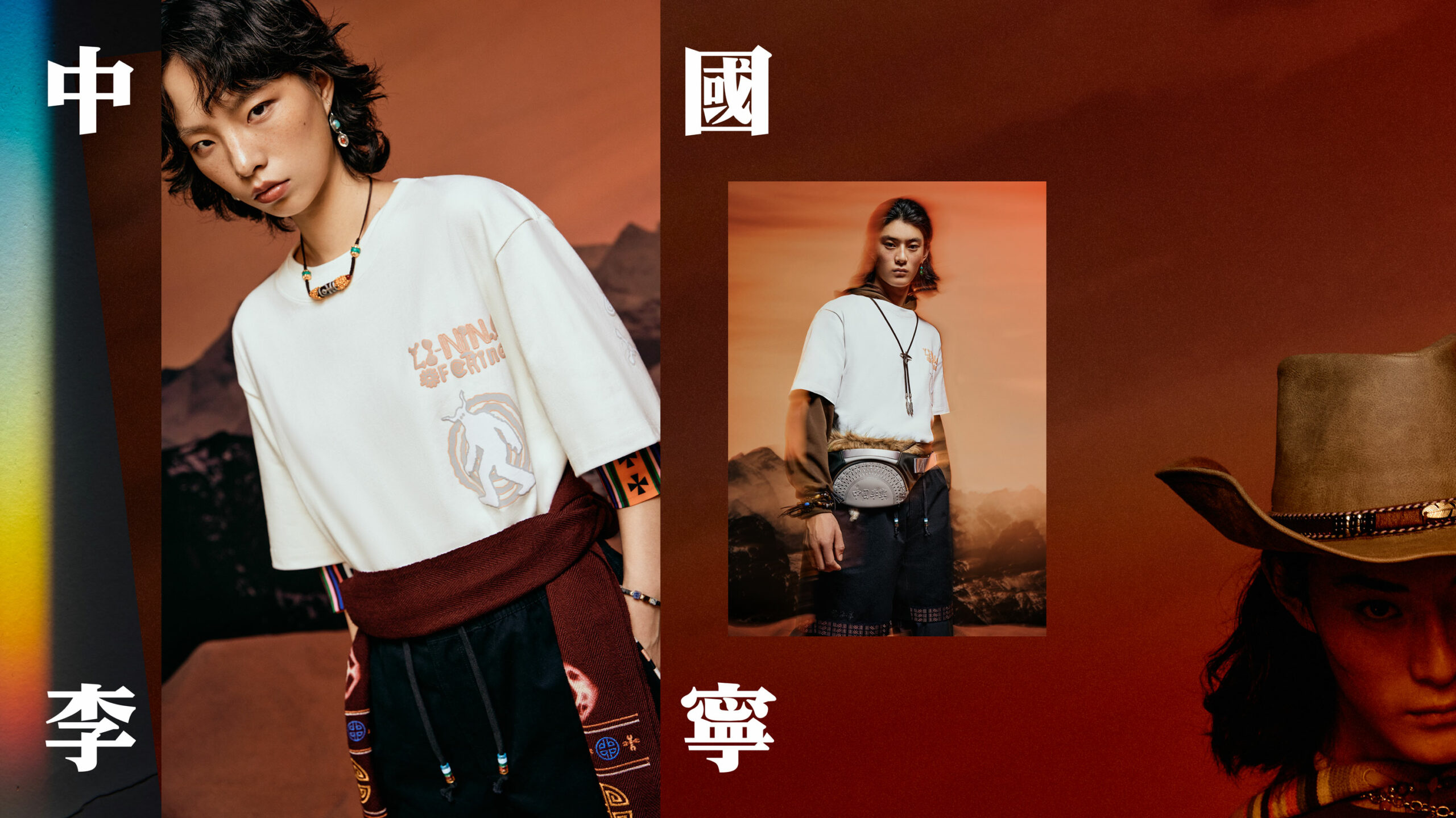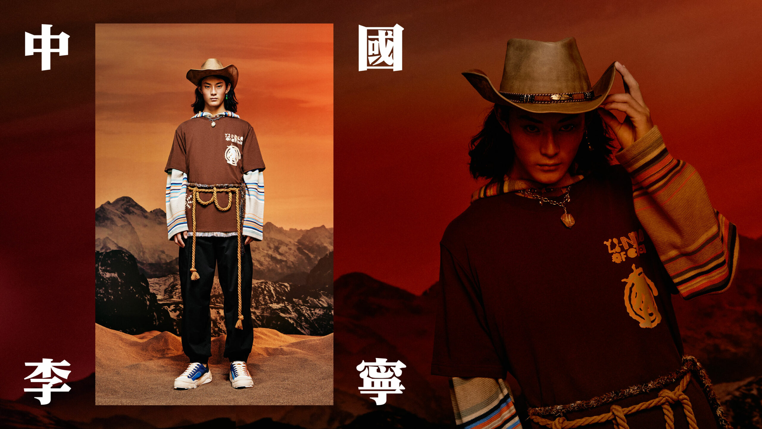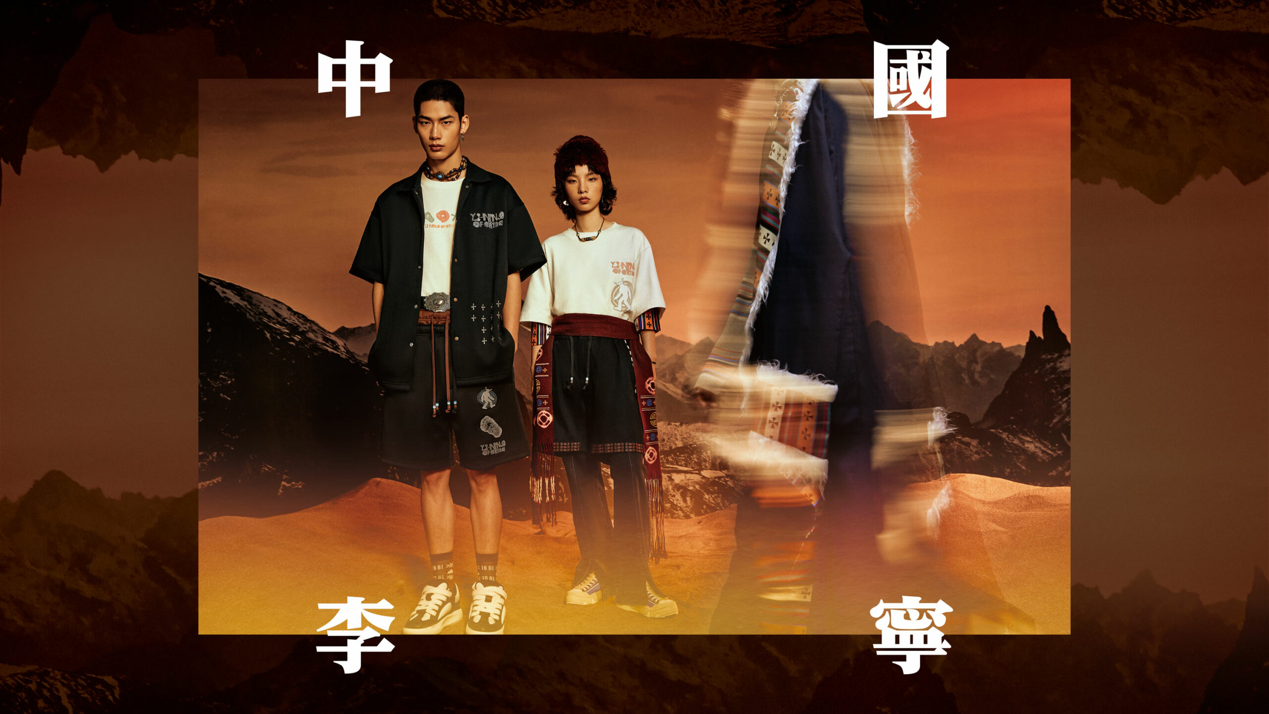 谈及当下的潮流时尚趋势,原生色彩的自然、民族视觉系美学,俨然已成焦点;中国李宁创领的潮流造型新趋势,灵感就源于西藏高原民族文化。常见于藏族羊毛织物「氆氇」的十字花纹样装饰图腾、已成为广袤藏区神圣守护象征的「雪人」图案、以及具有文化象征性的藏文字体、映射自然奇景的山石、大地、落霞色调,被悉数浸透至潮流服饰之中。