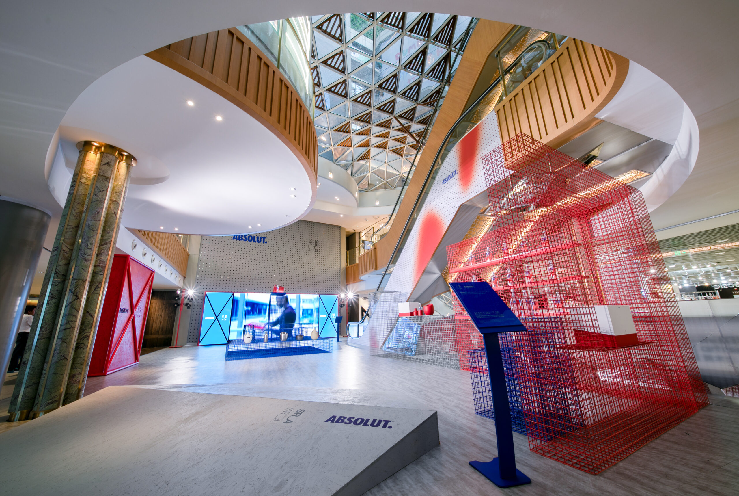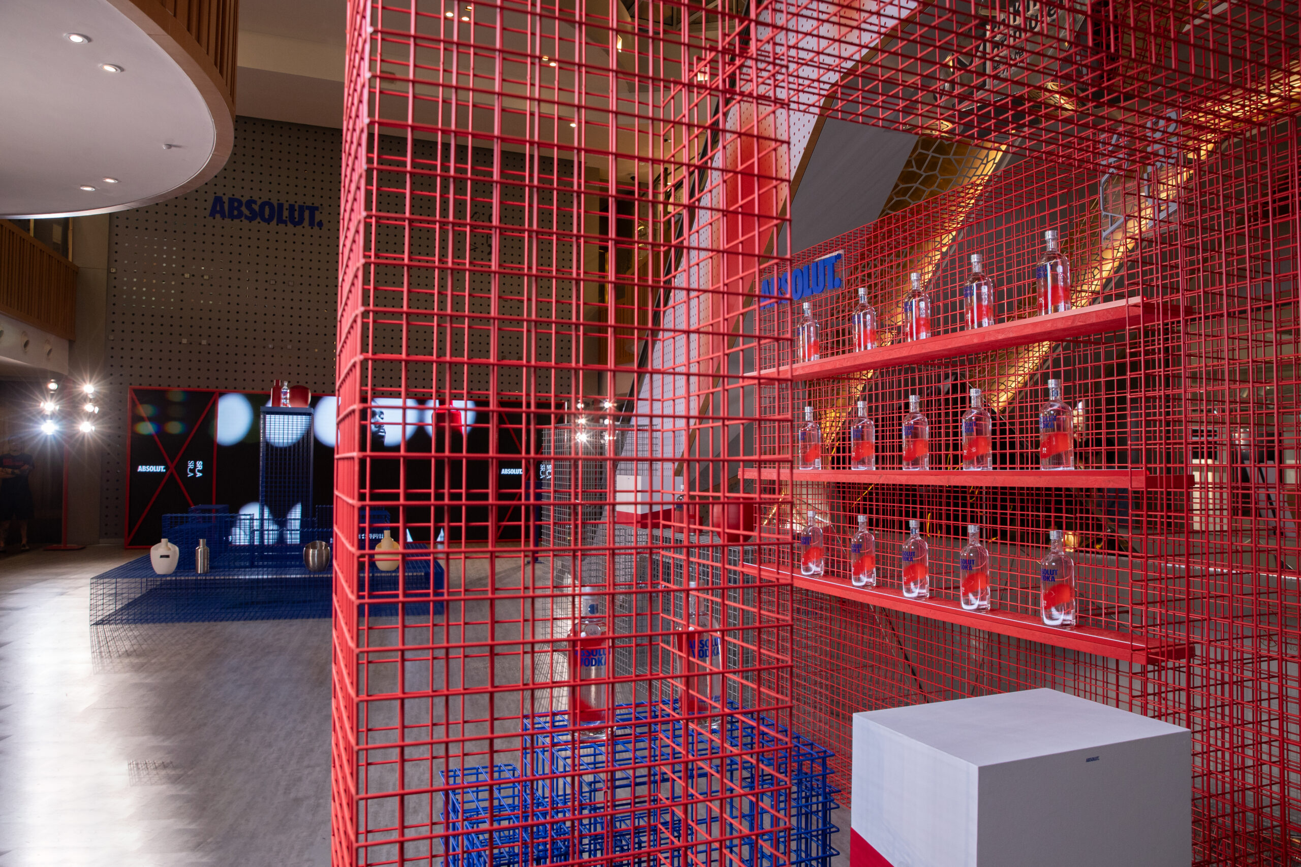 实际上,SR_A 的代码是红色和橙色,ABSOLUT.® 是蓝色,是将视觉语言和建筑风格混合在一起的。SR_A 拥有相当严肃的设计语言,ABSOLUT.® 是非常乐观和开放的品牌,将两者结合在一起创造有趣的概念和视觉语言。