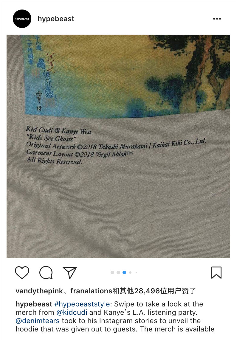 今天是 Kanye West 和 Kid Cudi 两人的合作专辑《KID SEE GHOSTS》的发布日,相信大家都等的很辛苦吧,但比专辑释出还要早的,是周边服饰。从图片中可以在衣服背面看到很醒目的专辑封面,而衣服正面是印了 “Kids See Ghosts 、 Kid Cudi Kanye West 、 Seven Songs 、 Recorded Album 、©2018” 等文字。虽说专辑图案是由艺术家村上隆设计,但是服装制作却是由 Virgil Abloh 操刀的,大家在衣服背面的注释文字中仔细看看就会发现。目前专辑的周边服饰一共有三款,现已开通线上购买渠道,喜欢的朋友不要错过啦。