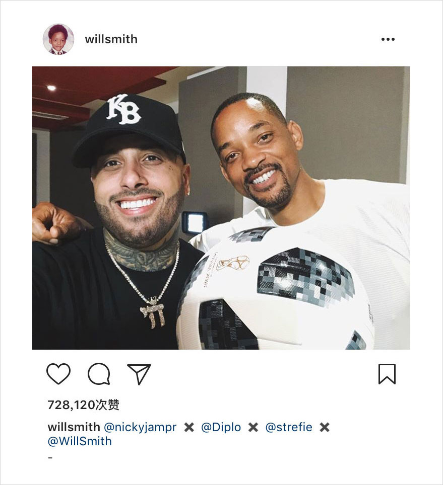 曾被评为全球最吸金的影星 Will Smith 于近日宣布将为 2018 年在俄罗斯举行的第 21 届世界杯足球赛献唱主题曲,大家也许不知道,曾被奥斯卡提名的 Smith 年轻时是作为说唱歌手出现在大家面前,并且拿过四座格莱美大奖,虽说这几年更多的是以演员的身份给大家呈现作品,但 Smith 在音乐上的成就还是不俗的,而这次 “重操旧业”,联手著名 DJ Diplo 和 歌手 Nicky Jam 以及 Era Istrefi 共同为世界杯打造音乐单曲,相信喜欢听 HipHop 音乐的老朋友会非常期待,据悉,该单曲将伴随着 MV 于本月 25 日发布。