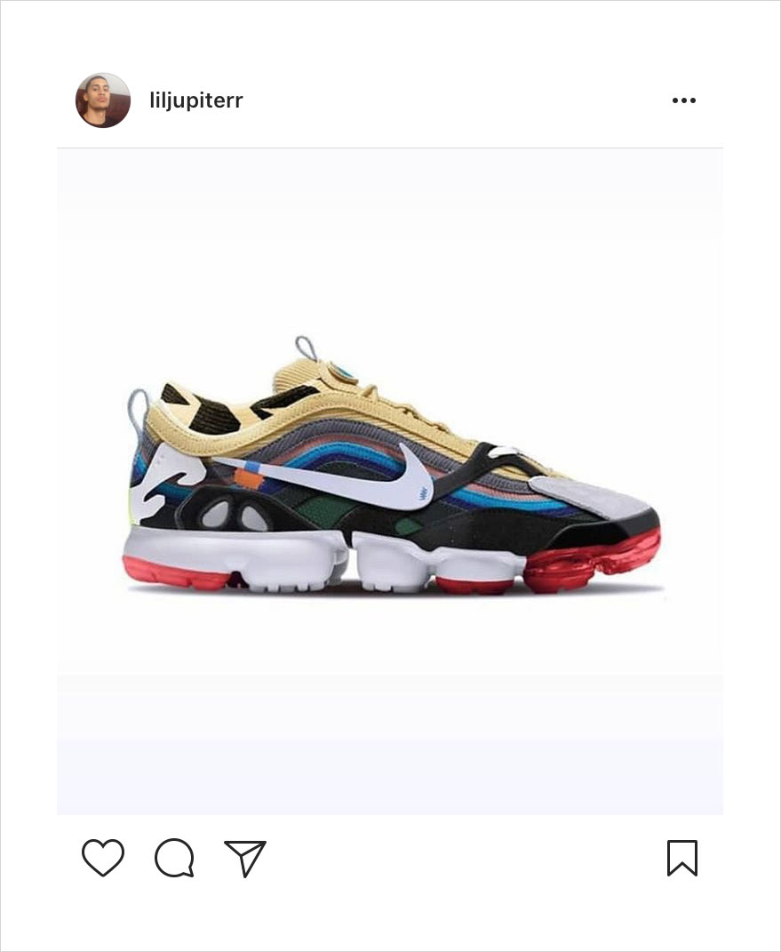 球鞋爱好者往往不会放过任何火热鞋款,就像这段时间大火的 Virgil Abloh x Nike Air Jordan I UNC ,或是再之前的 Nike Air Max 1/97 等等,至少举例子的这两双相信不少朋友已经收入囊中了。满足爱好的结果往往是金钱的花费,但试想,如果现在大火的鞋款全都融合在一双鞋上,大家既能节约金钱又能满足爱好了,而日前真的有人实现了这种设想,如图,你会发现不少鞋款的元素,虽然整体看着有些混杂,但并没有给人很冲突和矛盾的感觉。那现在问题来了,你在这款鞋中看到了哪些鞋呢?