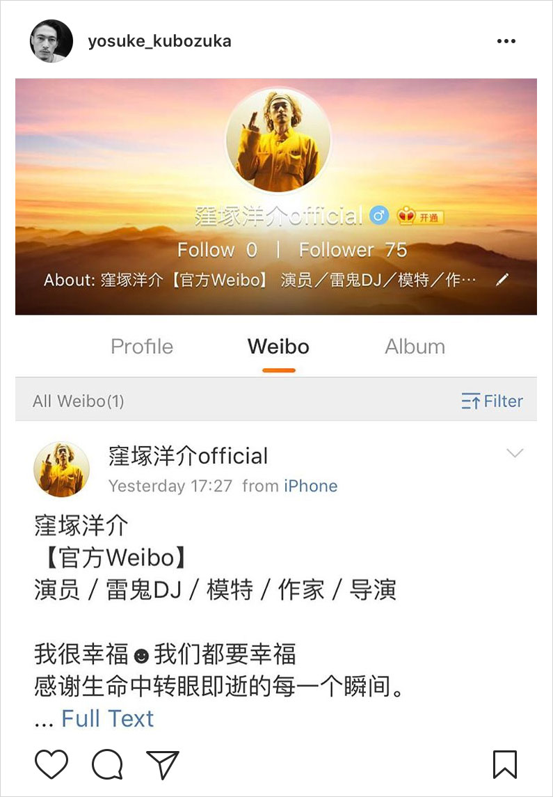对于洼冢洋介,想必不少女性读者是非常熟悉了,就如图片中介绍的,洼冢洋介身上的标签非常多,但最让大家印象深刻的,还是他模特和雷鬼 DJ (也是歌手)的身份,作为模特,洼冢洋介经常受邀拍摄各大品牌的 LOOKBOOK ,也经常登上各大杂志封面,因此俘获了不少少女的芳心,而作为歌手,洼冢洋介也有许多传播度极高的作品,也许是因为洼冢洋介这段时间开始了在中国的巡演,感受到了国内粉丝的热情,所以开通了官方微博,以更好地与粉丝们互动吧。
