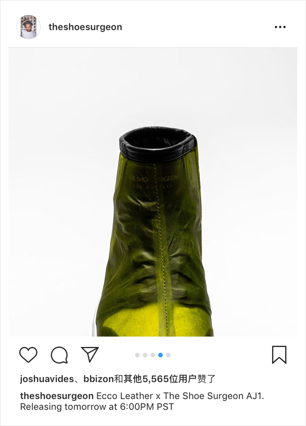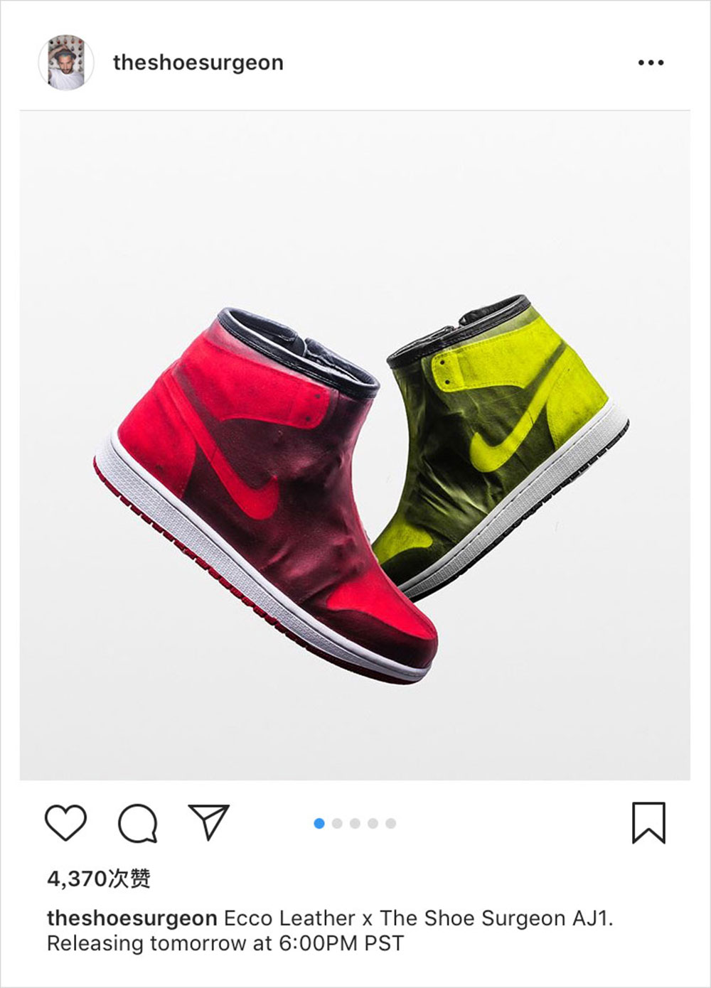 知名球鞋客制单位 The Shoe Surgeon 以 Air Jordan 为蓝本进行设计的作品大家应该是见怪不怪了,但这次他们带来的新作品一定会让你们眼前一亮,因为 The Shoe Surgeon 找来了专门制造独特皮革的品牌 ECCO Leather ,利用该品牌最新的独特透明材质重新设计了 Air Jordan I 。就如你所见,看起来就像是被塑料袋给包裹住了似的,隐隐约约可以看到里面的 Swoosh 。该鞋款明日发售,不知这样的设计能勾起你的购买欲吗?